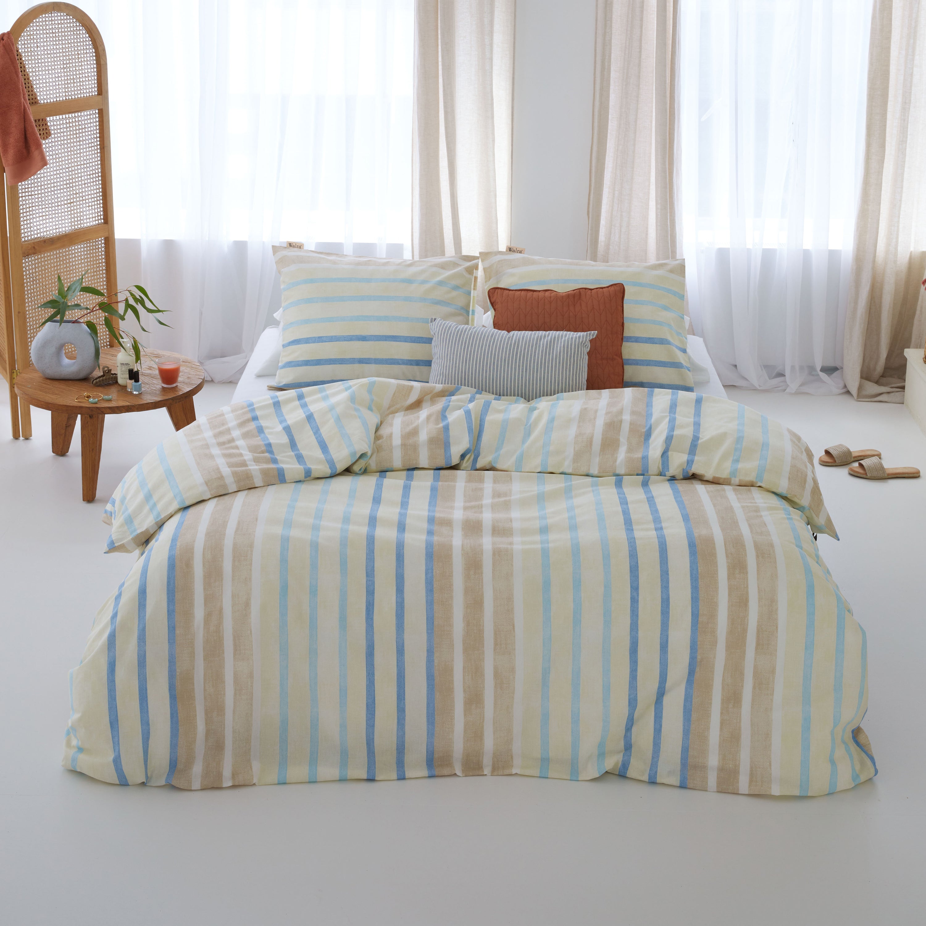 Walra Natural Stripes Dekbedovertrek 140x220 - Zand Gestreept