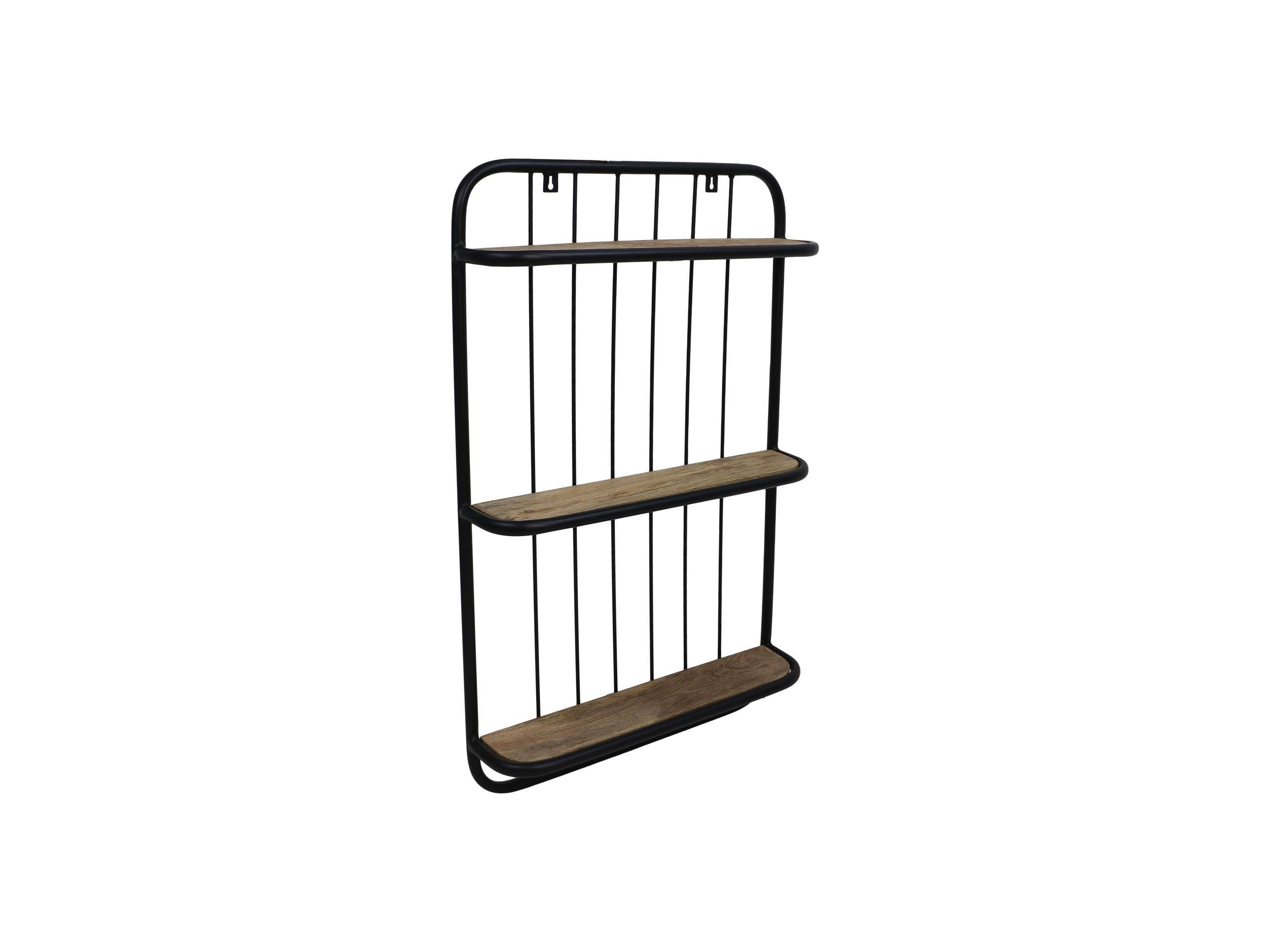Wandplank - 3 planken - 50x12x80 - Zwart|naturel - Mangohout|ijzer