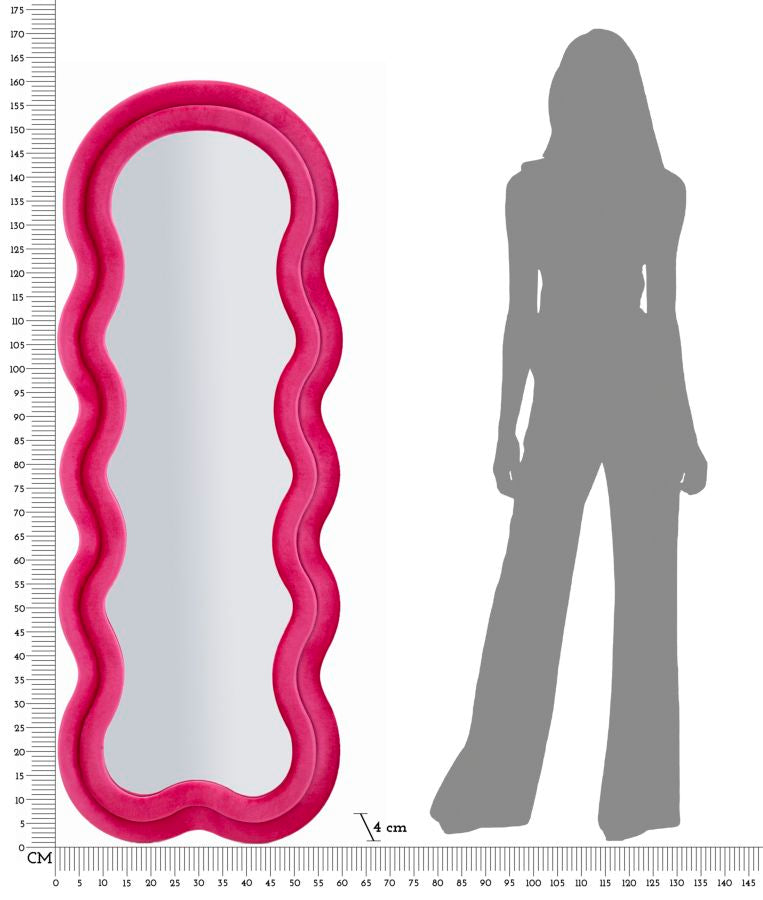 Wandspiegel met fuchsia fluwelen lijst, 60x4x160 cm