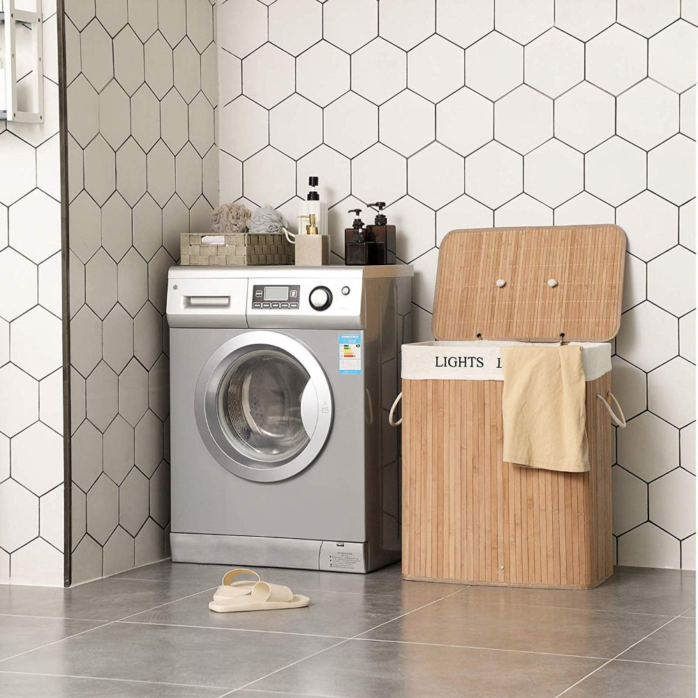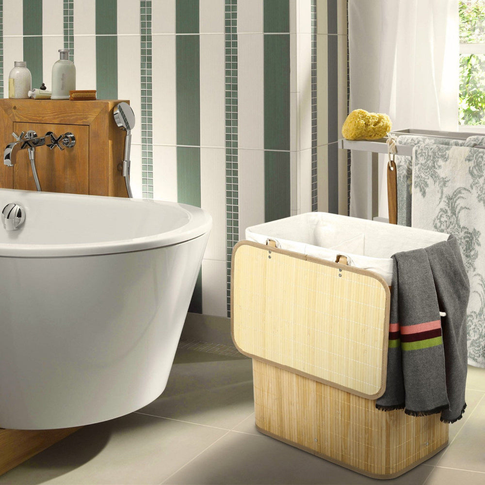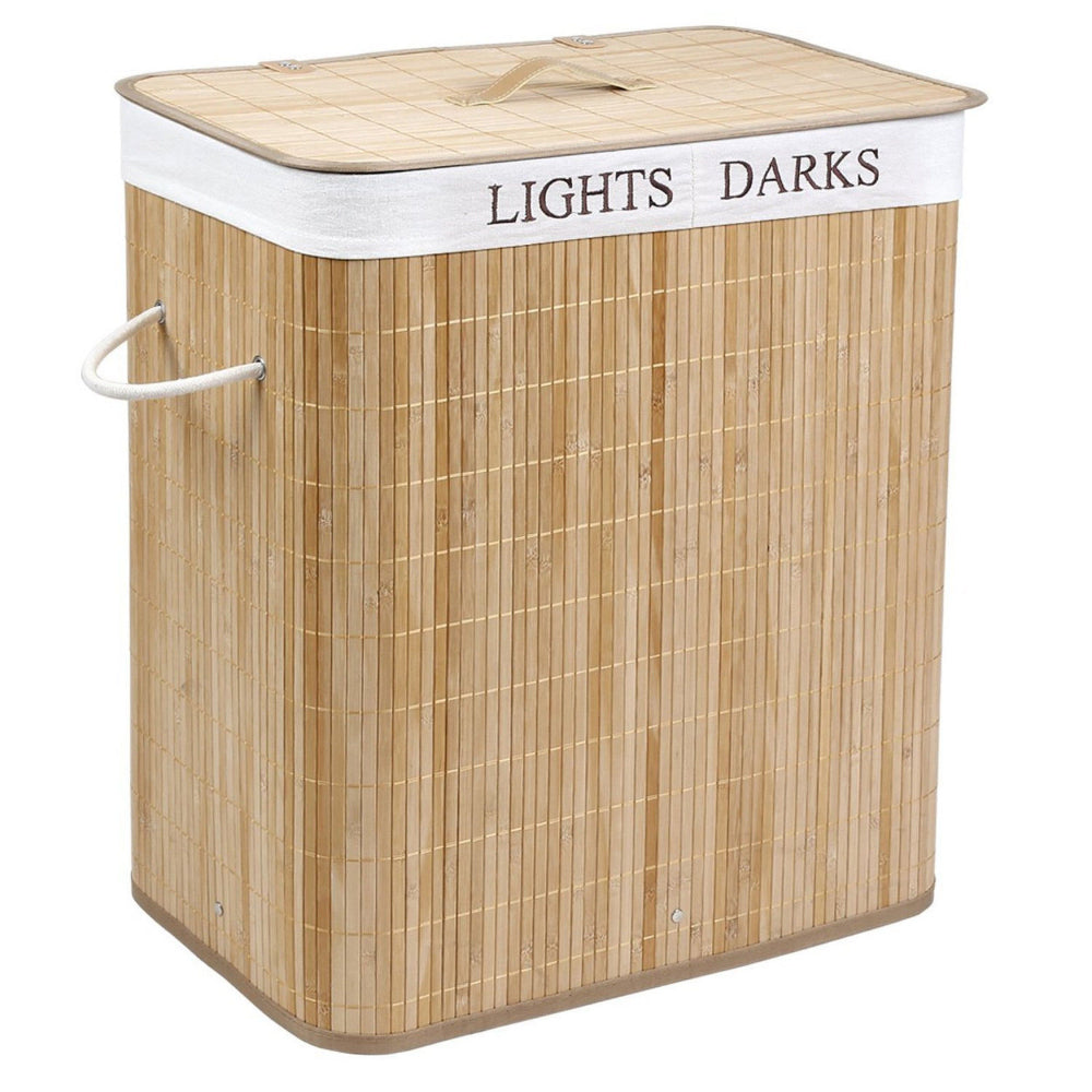 Wasmand - 2 vakken van elk 50 liter - 52x63x32 cm - bamboe