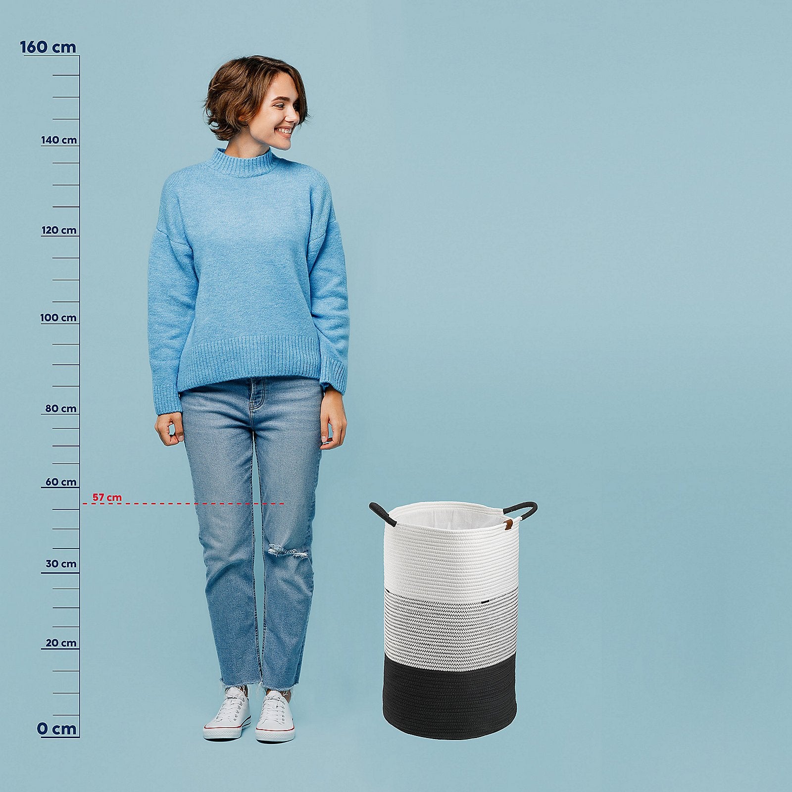 Wasmand, 40 x 57 cm, Rond, Wit/Zwart – Kela | Hedda