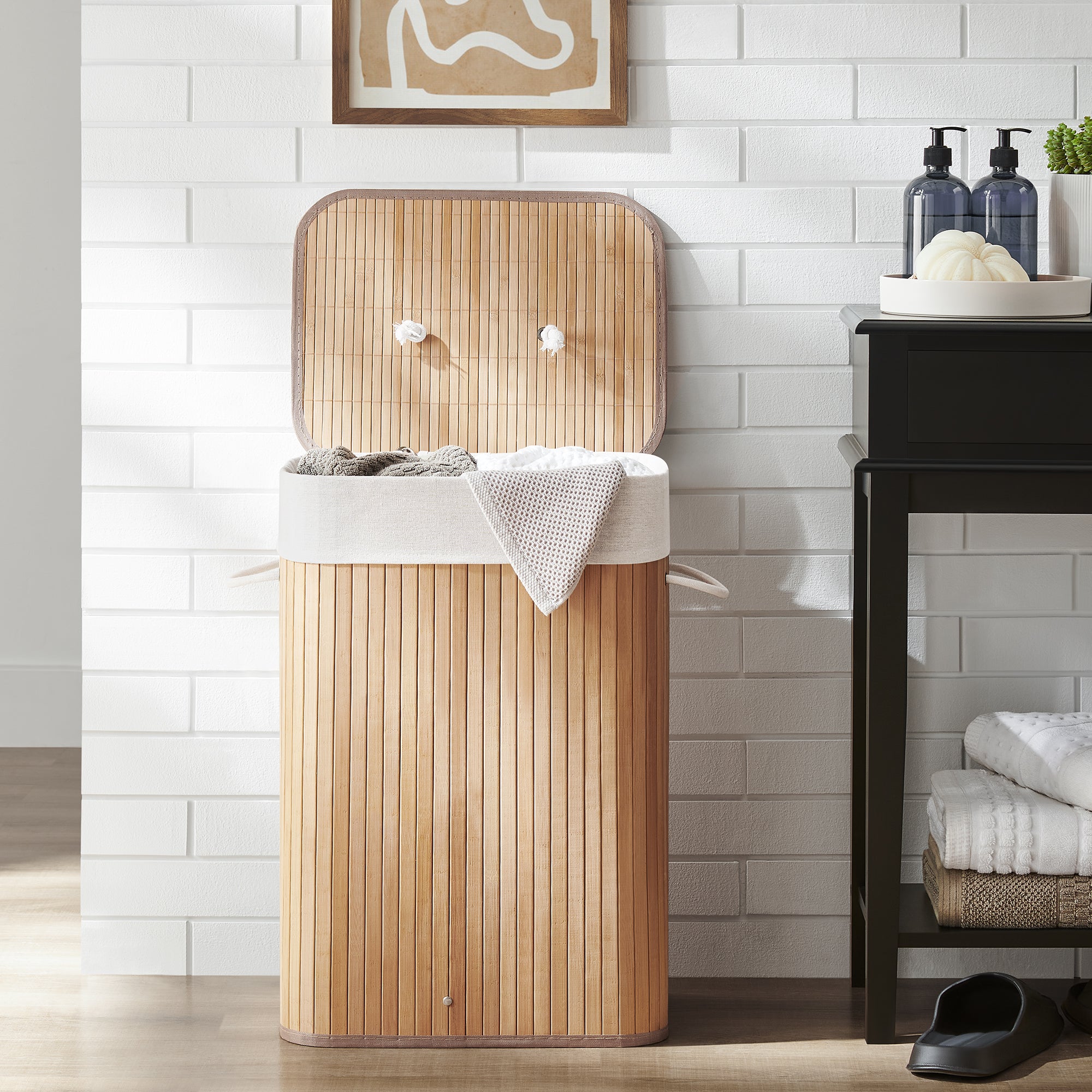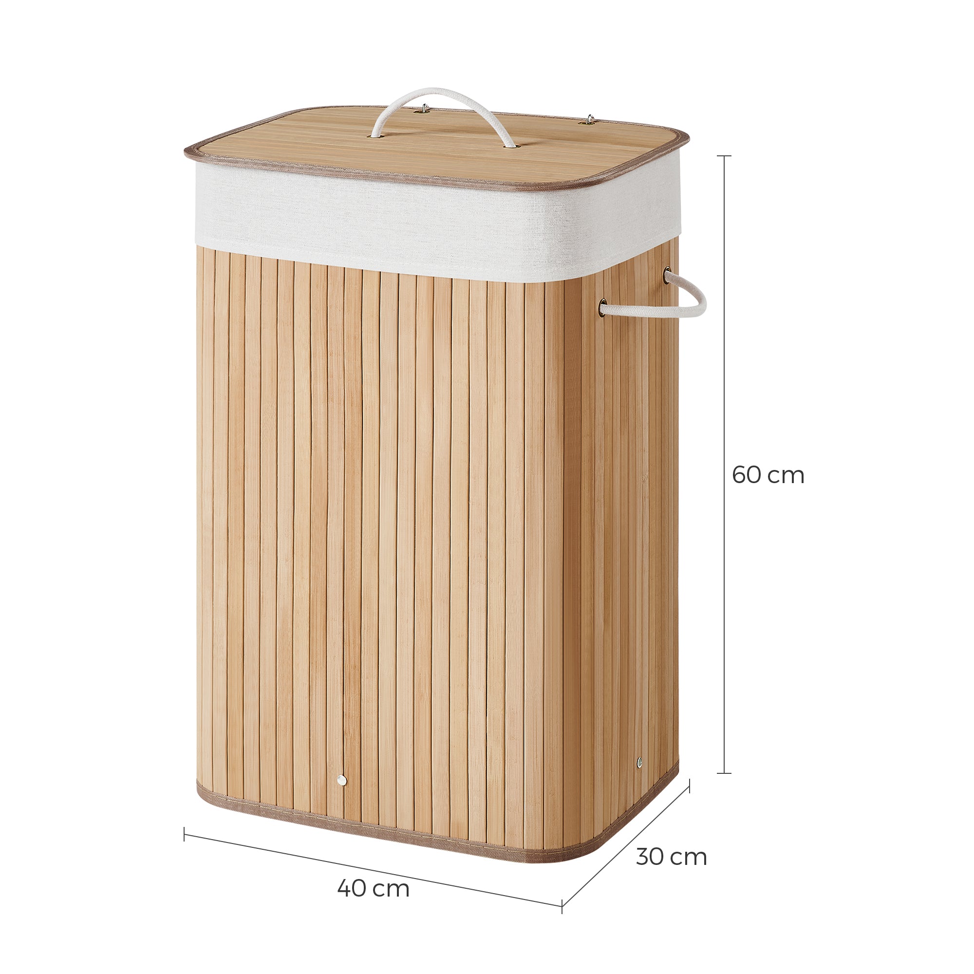 Wasmand met deksel - katoenen zak - 72 liter - 40x60x30 cm - bamboe