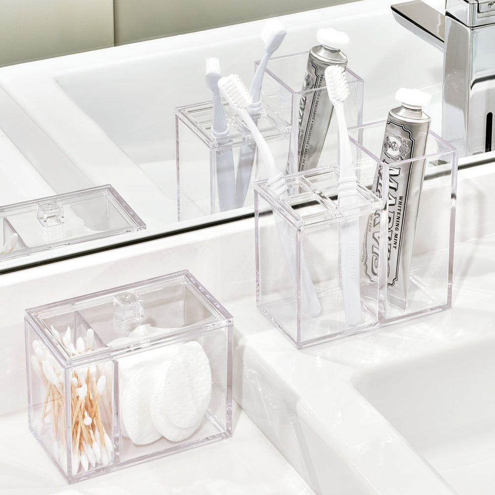 Wattenschijfjes -en Wattenstaafjes Houder, Organizer, 2 Vakken, Transp