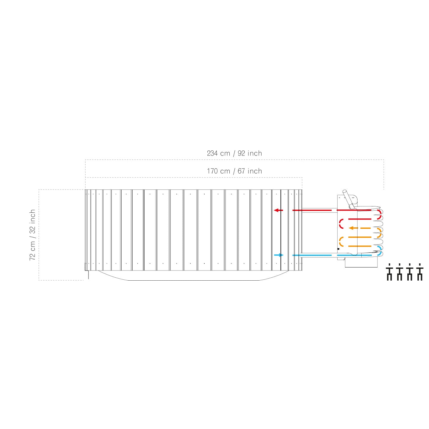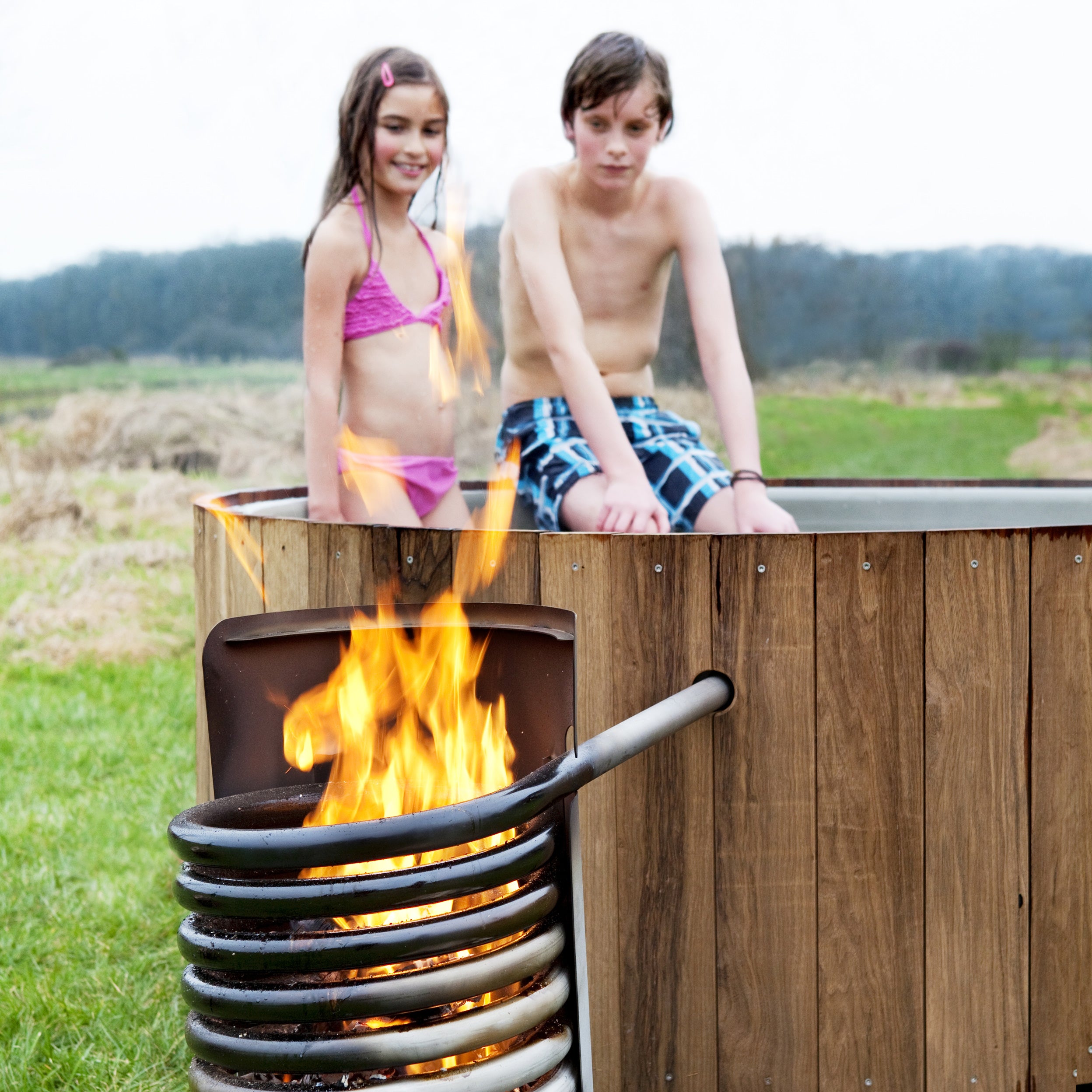 Natuurlijke verwarming De Dutchtub Wood werkt net als alle andere Dutchtubs: je hebt alleen maar water, houtblokken en lucifers nodig. Vul de Dutchtub met water en plaats het hout in het stookmandje van de roestvrijstalen spiraal zodat je eenvoudig een vuurtje kunt maken. Het stookmandje verwarmt vervolgens de spiraal zodat het water in de spiraal opwarmt. Het warme water zal opstijgen en zo bovenin het bad terecht komen, het koude water op de bodem zal vervolgens de spiraal instromen zodat er een natuurlijke circulatie ontstaat. Een uniek concept waarmee je de tub zo lang warm kunt houden als je zelf wilt.