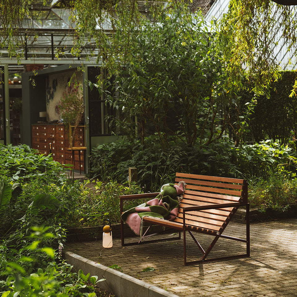 - De combinatie van houten latten op een stalen frame maakt de patio bench zowel sterk als elegant.