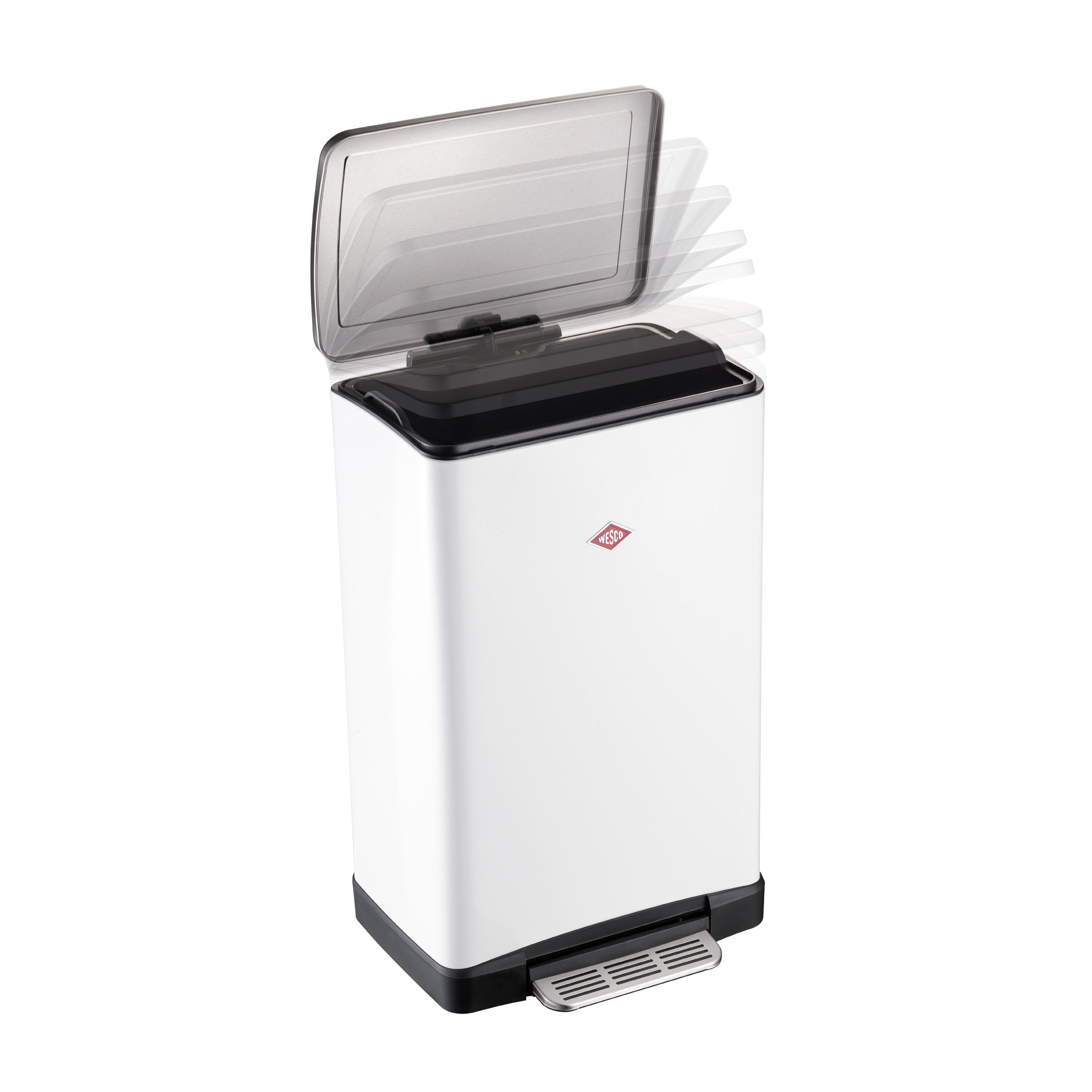 Tijd om de vuilniszak te verwisselen? Tijdens het verwisselen van de vuilniszak laat je het deksel openstaan dankzij het blokkeersysteem. Dankzij de uitneembare binnenemmer verwissel je de vuilniszak in een handomdraai. Na gebruik sluit je de pedaalemmer geruisloos dankzij de demper. Reinig de Wesco One Boy met een vochtige doek en schoonmaakmiddel.