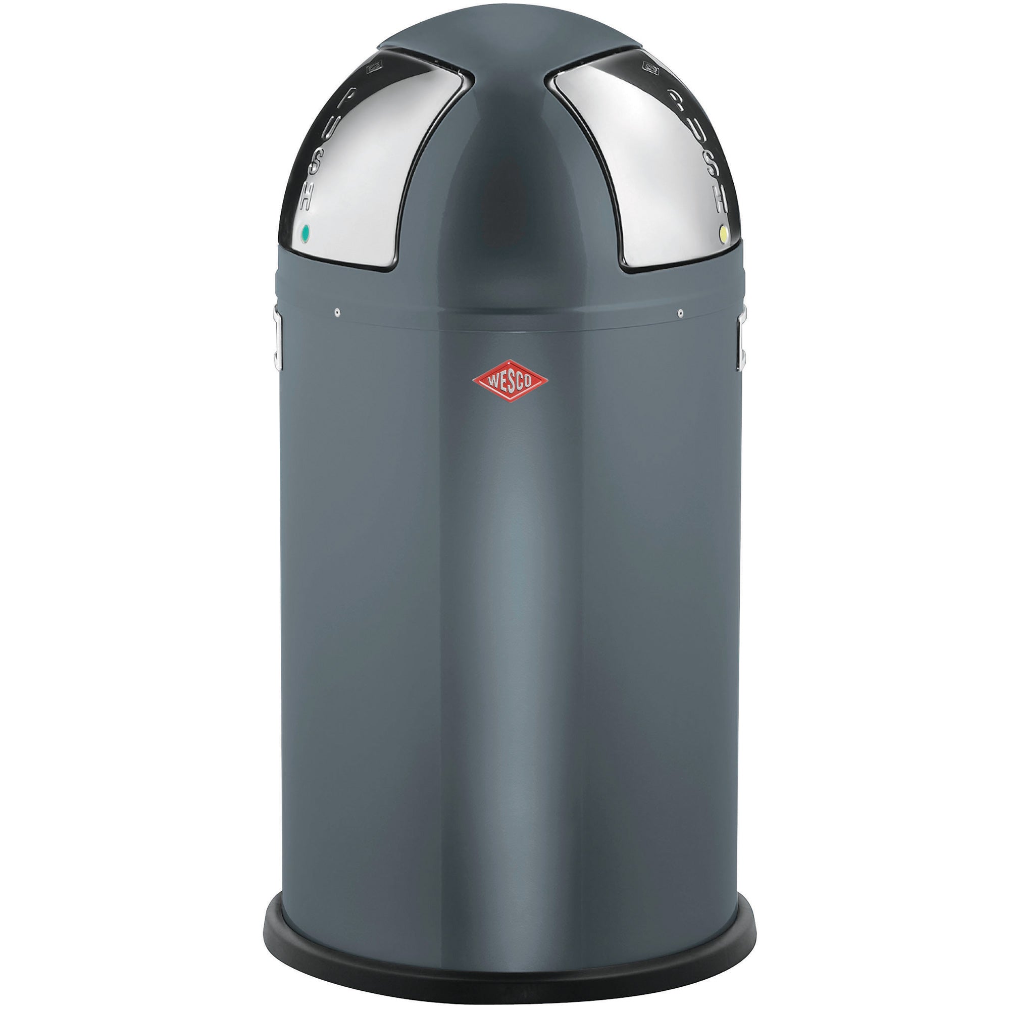 Afval scheiden Extra fijn van de Wesco Push Two is de mogelijkheid om afval te scheiden. De binnenkant is verdeeld in twee delen: één voor elke 'push-klep'. In elk deel past 25 liter, wat de afvalemmer een inhoud van totaal 50 liter geeft. De push-manier van afval weggooien is erg handig: je hebt maar één hand nodig en kan met beleid het push-deksel openen en sluiten.
