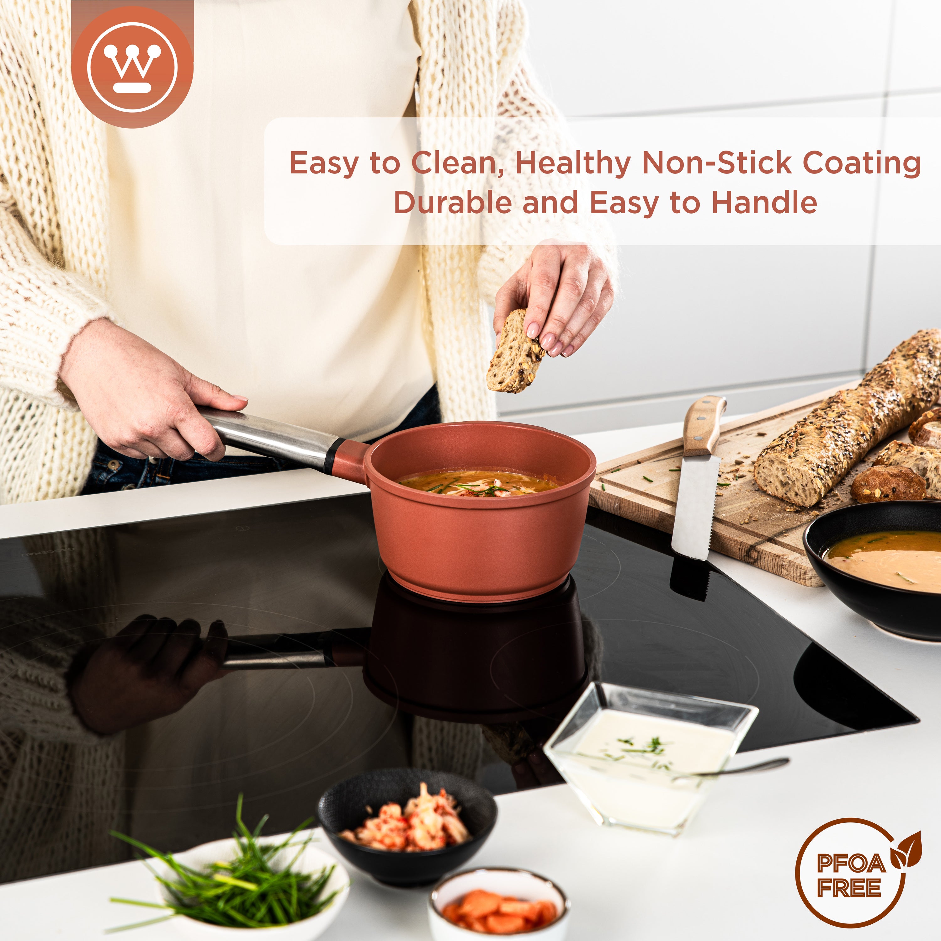 Waarmee bereid jij de lekkerste sauzen, soepen en marinades? Met een steelplan natuurlijk! Een steelpan is onmisbaar in elke keuken en bij elk gerecht heb je wel een steelpan nodig. Met de steelpannen uit de Westinghouse Performance Series Cookware heb jij de beste kwaliteit in handen, zónder pijnlijke verbrande handen! Deze steelpan heeft namelijk handgrepen en handvaten gemaakt van roestvrijstaal, wat voor een fijne cool-touch functie zorgt.