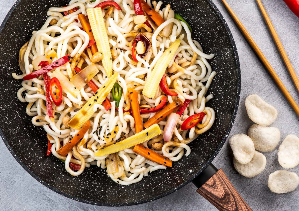 Met de Westinghouse Zwart Marmer Wok Sepciale Editie (30cm) bereid je heerlijke wokgerechten met verse groenten, vis en vlees in een handomdraai. Door de snelle opwarming en gelijkmatige warmteverdeling is de bereidingstijd kort en blijven vitaminen, smaak en structuur mooi behouden. Dankzij de uiterst sterke anti-aanbaklaag kan je lekker gezond koken en heb je nauwelijks vetstoffen nodig bij het bakken.