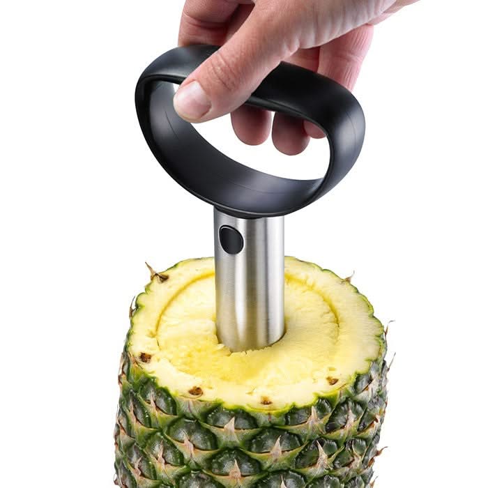 Ananas snijden is een lastige (sappige) klus met veel afval. De ananas-snijder helpt je in een handomdraai om ananas te snijden. Het sap blijft in de schil tijdens het snijden. Als je het handvat eraf haalt, kun je deze ananassnijder gebruiken als schenktuit om het sap in een glas te schenken. De ananassnijder heeft een comfortabele en snelle bediening. Na gebruik kun je de ananassnijder makkelijk schoonmaken. Voordelen van de Westmark Ananassnijder RVS
