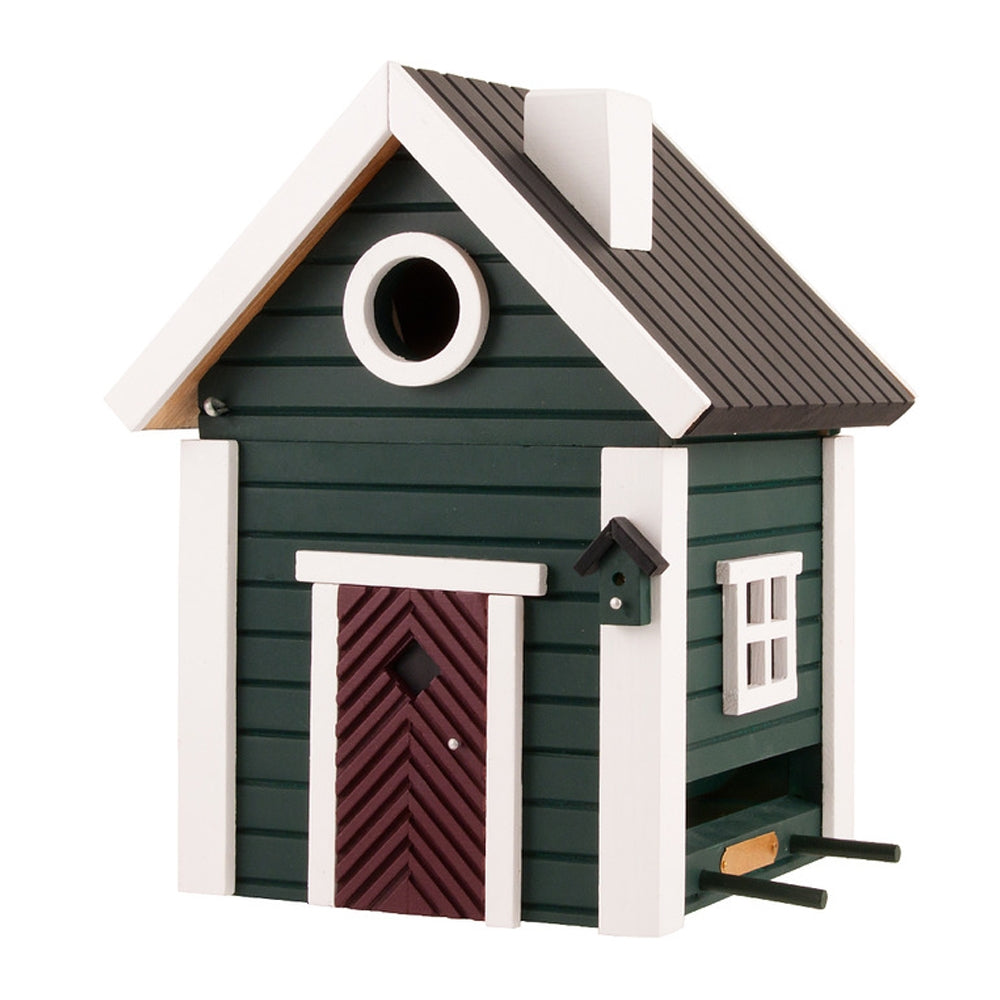 Het Multiholk Stugan is een combinatie van een vogelhuisje en een voederhuisje. Dit huisje heeft een award gekregen voor het meest innovatieve, decoratieve en functionele tuinproduct. Het is hoogwaardig afgewerkt en voorzien van vele details net als de Scandinavische bouwstijl. U kunt het multiholk ook alleen als voederhuis laten dienen. Dit kan door de invliegopening af te sluiten. Het dak is afneembaar, waardoor u eenvoudig het vogelzaad kunt bijvullen. Het voedergedeelte bevat een 2-liter reservoir voor vogelzaad. Grote vogels kunnen niet landen op het voedergedeelte en dit maakt het voederhuis een veilige plek voor kleine vogels. Het vogel/voederhuis heeft een afmeting van circa 18.4 x 19.4 x 24.7 centimeter (lxbxh).