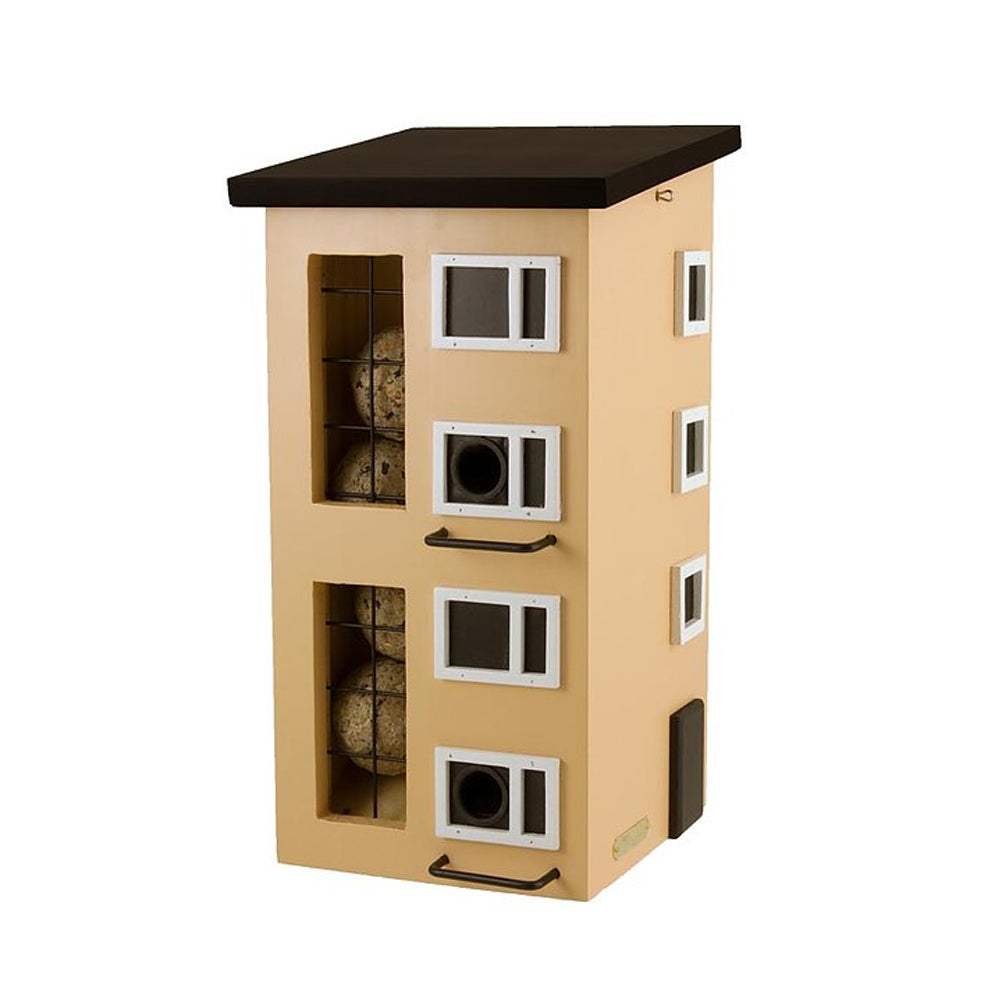 In de winter is het voor de vogels niet altijd makkelijk om eten te vinden. Er zijn weinig insecten en de rest van het voer zit vast in de bevroren grond. U kunt ze dus zeker een handje helpen door ze bij te voeren. En wie wil dat nou niet met zo’n mooie voederflat? In deze voederflat zitten meerdere vakken, waardoor er ruimte is voor vogelzaad, vetbollen en pinda’s. Door het dak te openen kunt u het voer bijvullen.