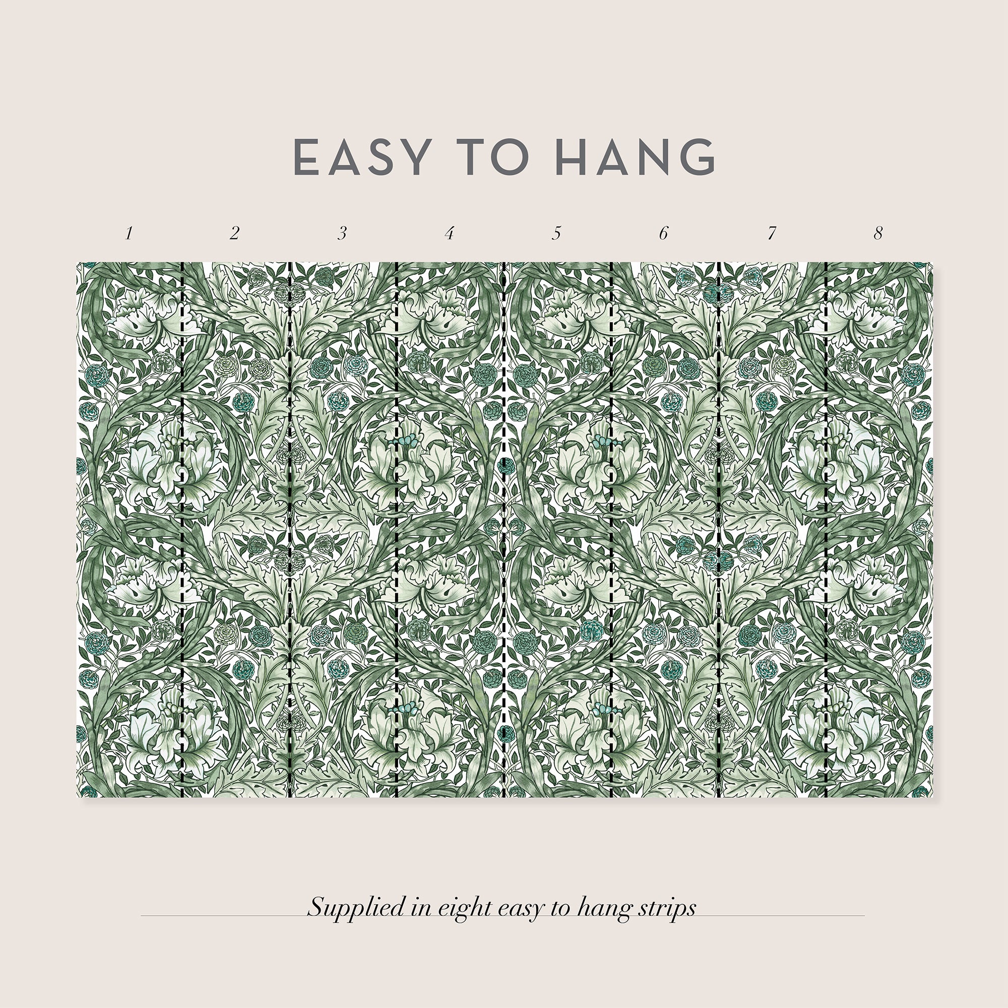 - Het behang wordt geleverd in 8 banen van 50 cm