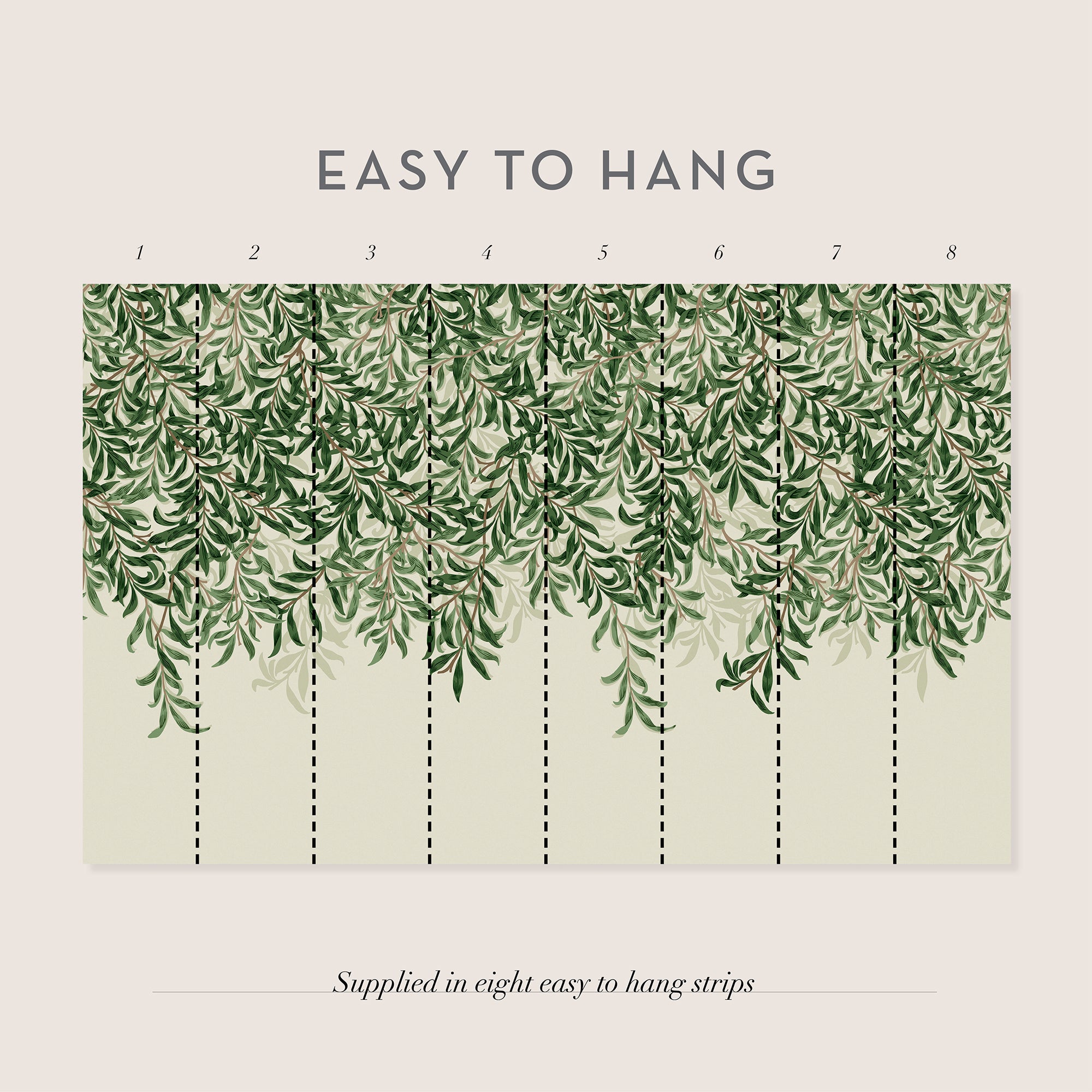 Geef je huis een bosachtig tintje. De Willow Bough Greens fotobehang toont een prachtige reeks olijf-, salie- en diepgroene tinten op een beige achtergrond met een groene ondertoon. Dit fotobehang is gedrukt op een matte substaatafwerking, om een moderne en verfijnde look te geven aan een traditioneel ontwerp.