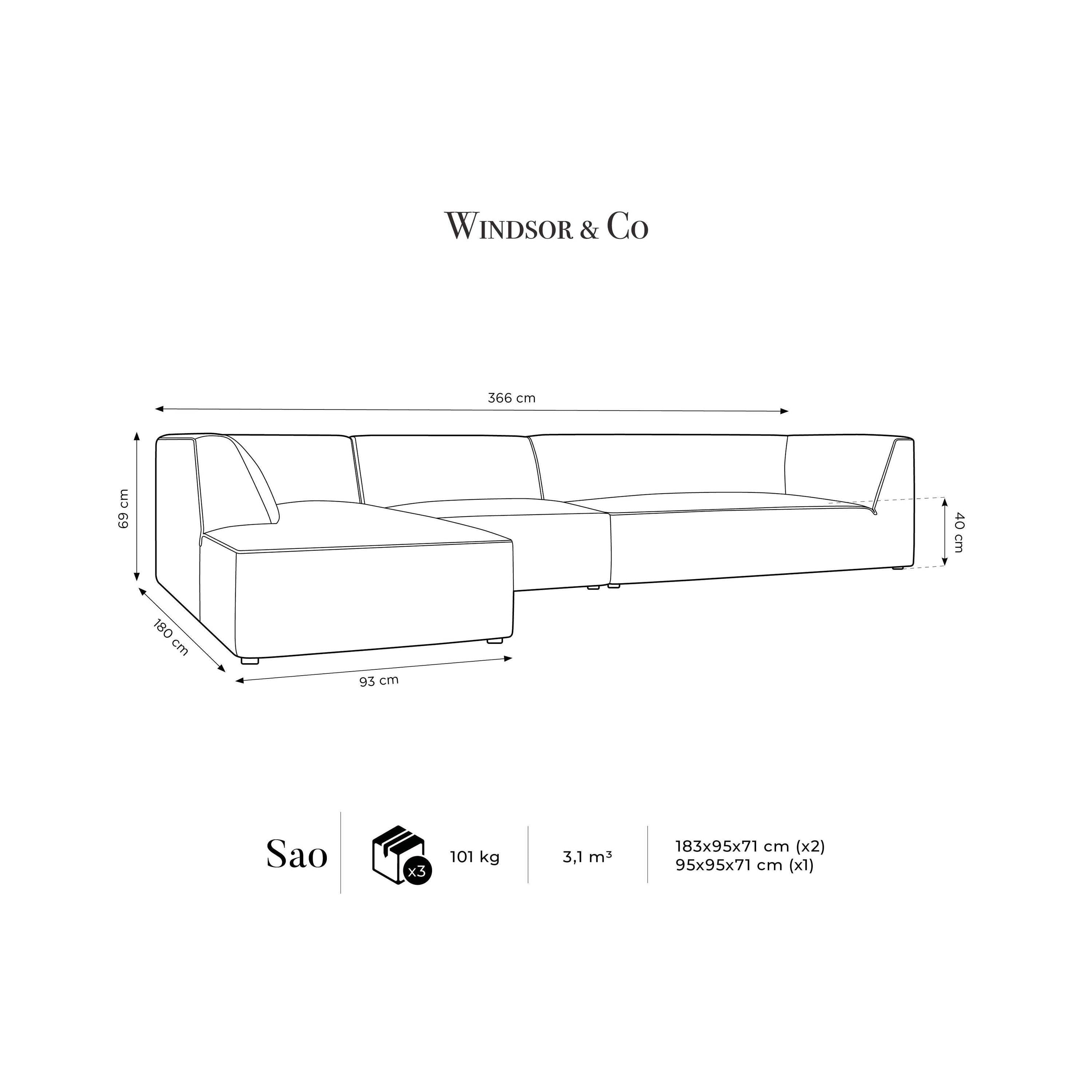 Windsor & Co Sao Hoekbank met Chaise Longue Links - 5-zits - Velvet - Grijs