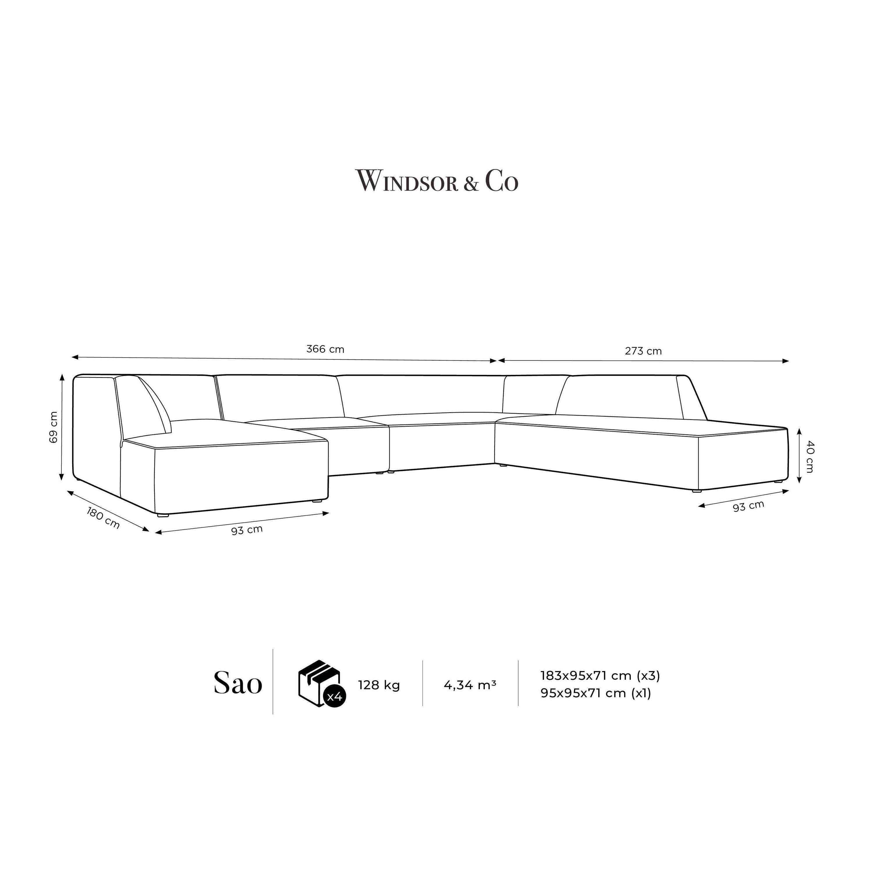 - Strakke u-bank met de afmetingen H 69 x B 366 x D 273 cm
