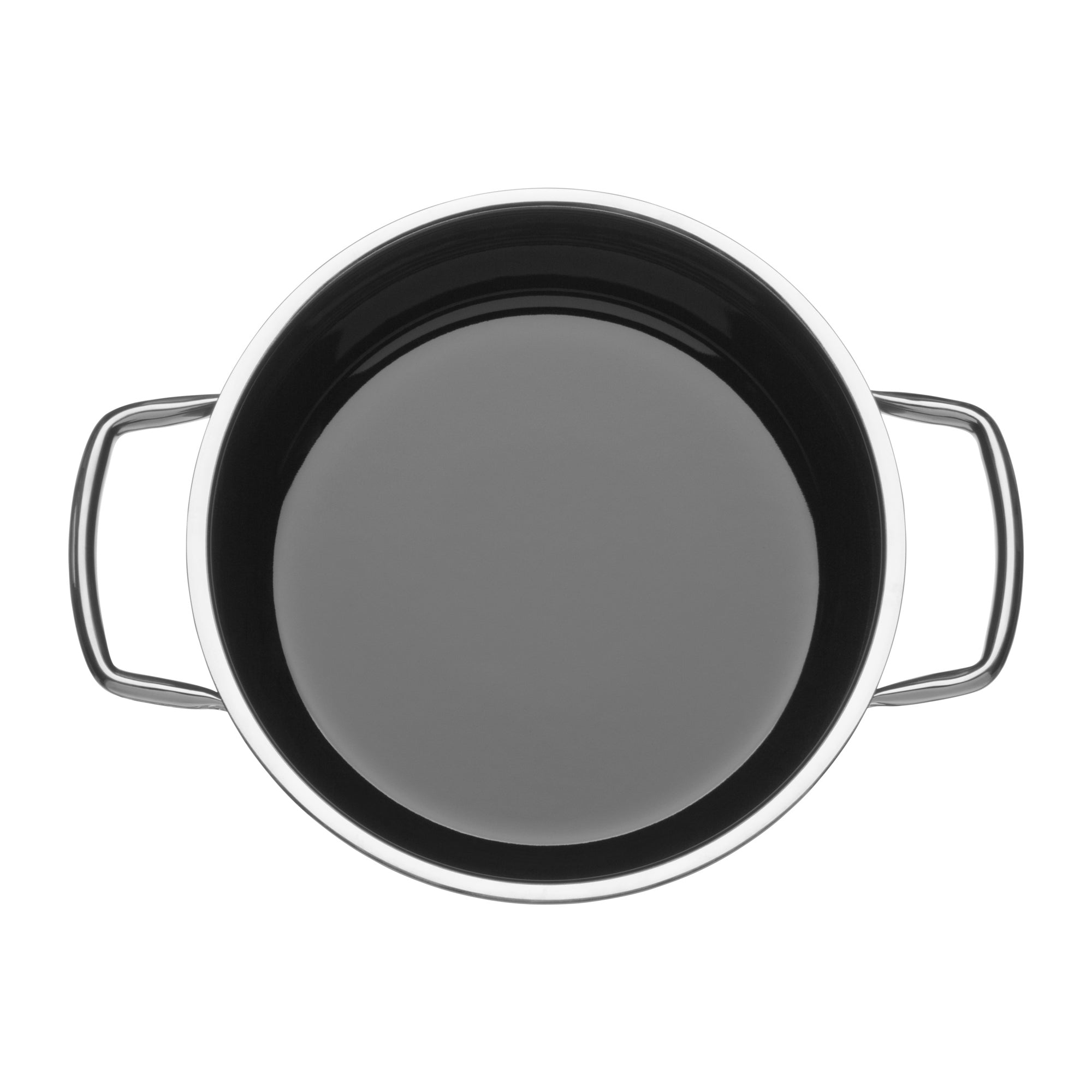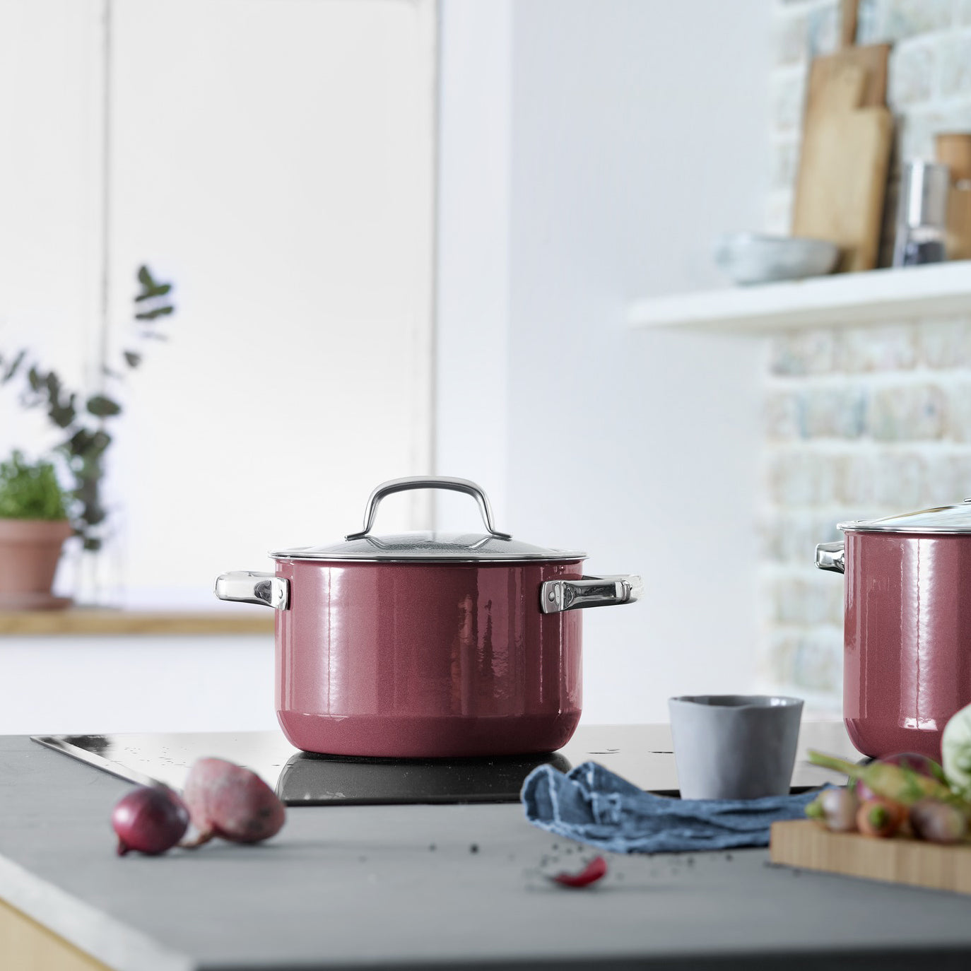 - Set: 2 hoge kookpannen (20 en 24 cm), 1 lage kookpan (20 cm), steelpan (16 cm)