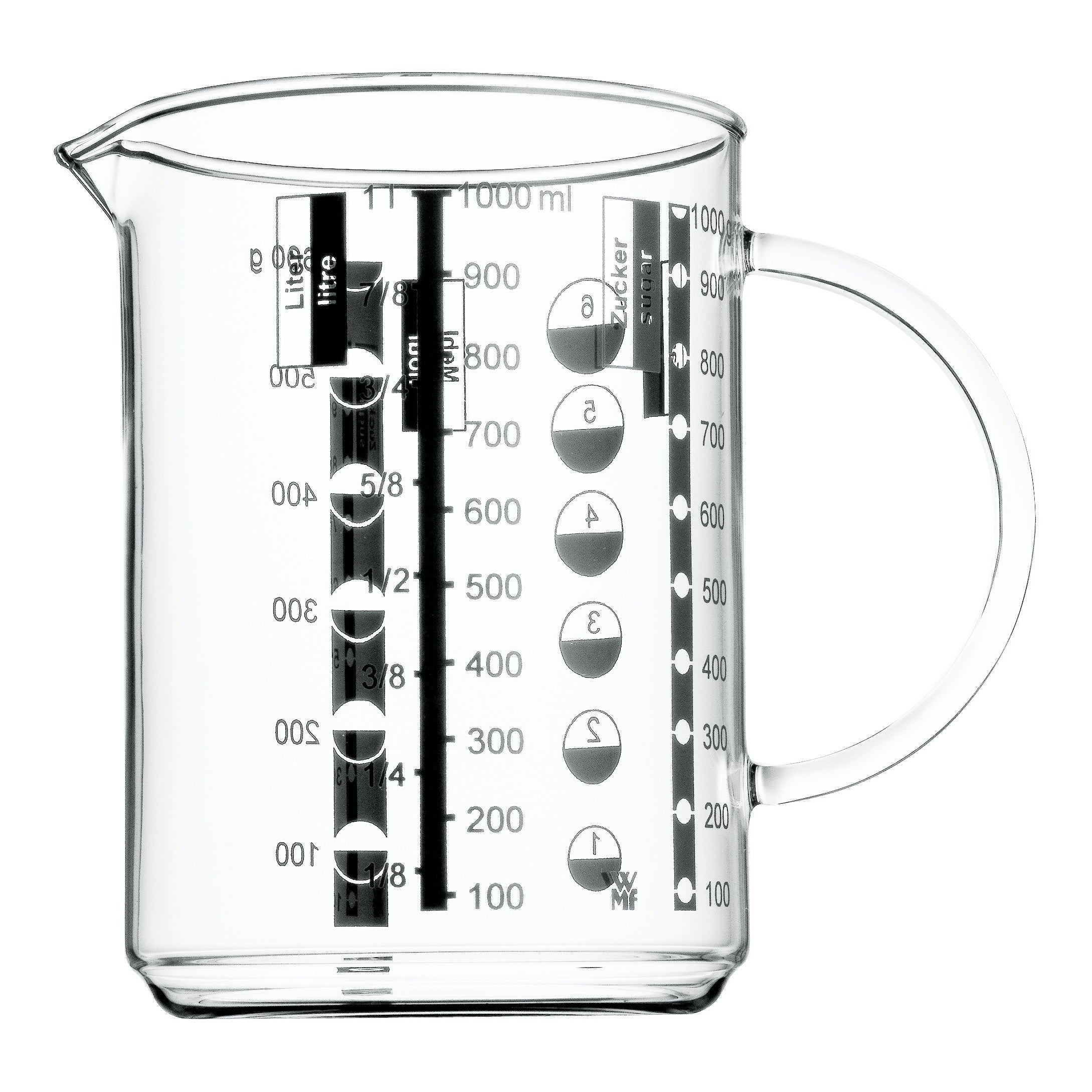 Praktisch De Gourmet maatbeker heeft een maximale capaciteit van één liter. Het glas is hittebestendig, dus ook warme vloeistoffen kun je hierin afmeten. Na gebruik reinig je de maatbeker gewoon in de vaatwasser.