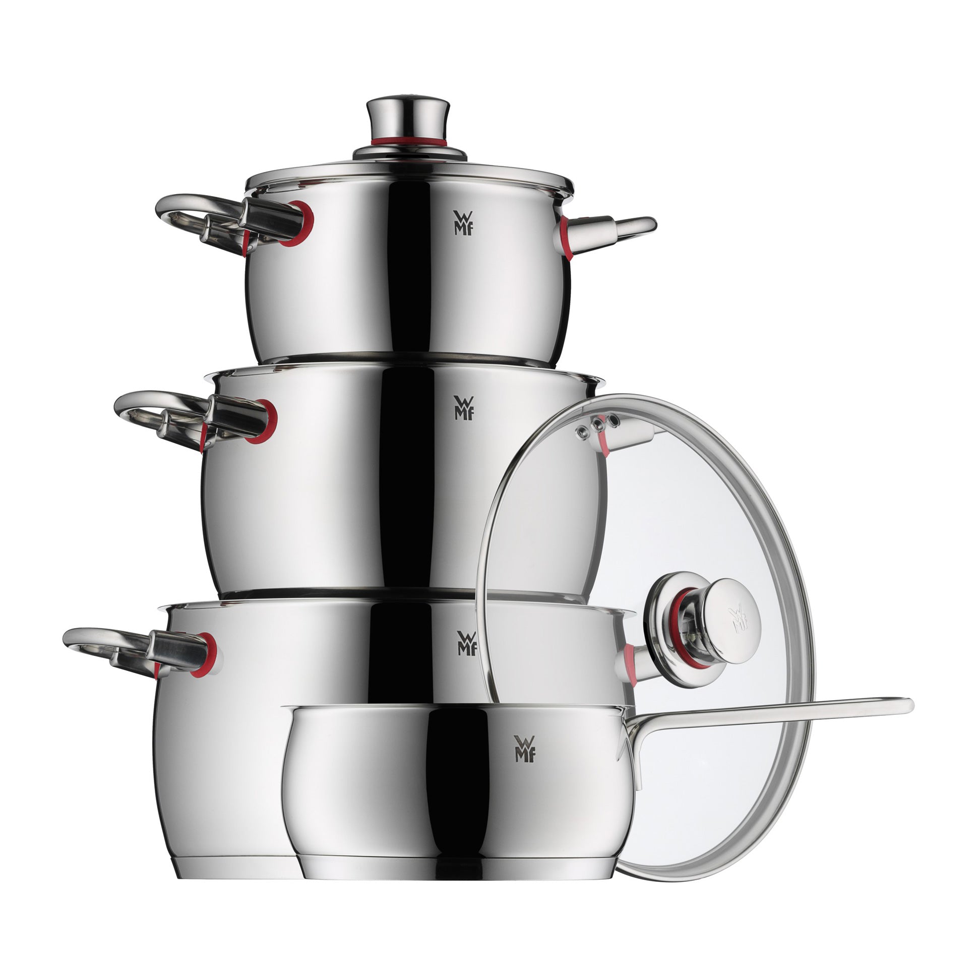 In één keer compleet Met deze prachtige WMF Quality One pannenset ben je in één keer compleet. Ze zijn een lust voor het oog en bijzonder prettig om mee te werken. Zo zijn de pannen voorzien van een universele TransTherm-bodem. Deze stevige bodem is geschikt voor iedere warmtebron. Daarnaast zijn de pannen afgewerkt met een modern, rood detail. Ook zijn de pannen vaatwasmachinebestendig.