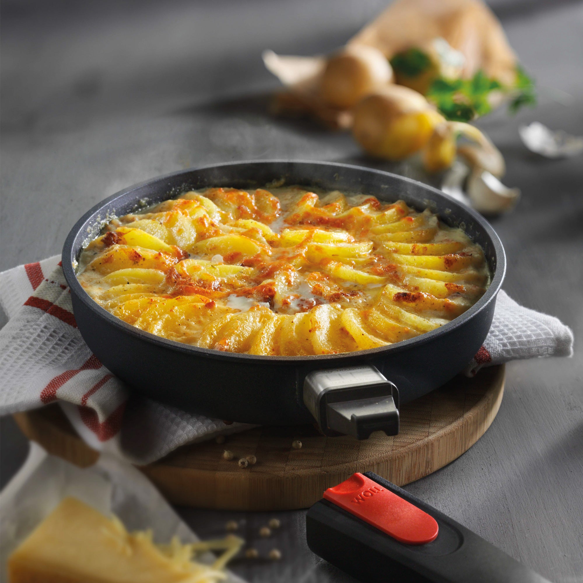 Praktische handgreep De doordachte Nowo pannen van Woll kenmerken zich door hun unieke handgreep. Deze is gemaakt van bakeliet en blijft daardoor koel tijdens het koken. Ook is hij afneembaar! De handgreep is gemakkelijk te verwijderen en vervolgens kan de hapjespan tot wel 250 graden Celsius de oven in. Daarnaast kun je de pan zonder handgreep extra eenvoudig stapelen en opbergen.