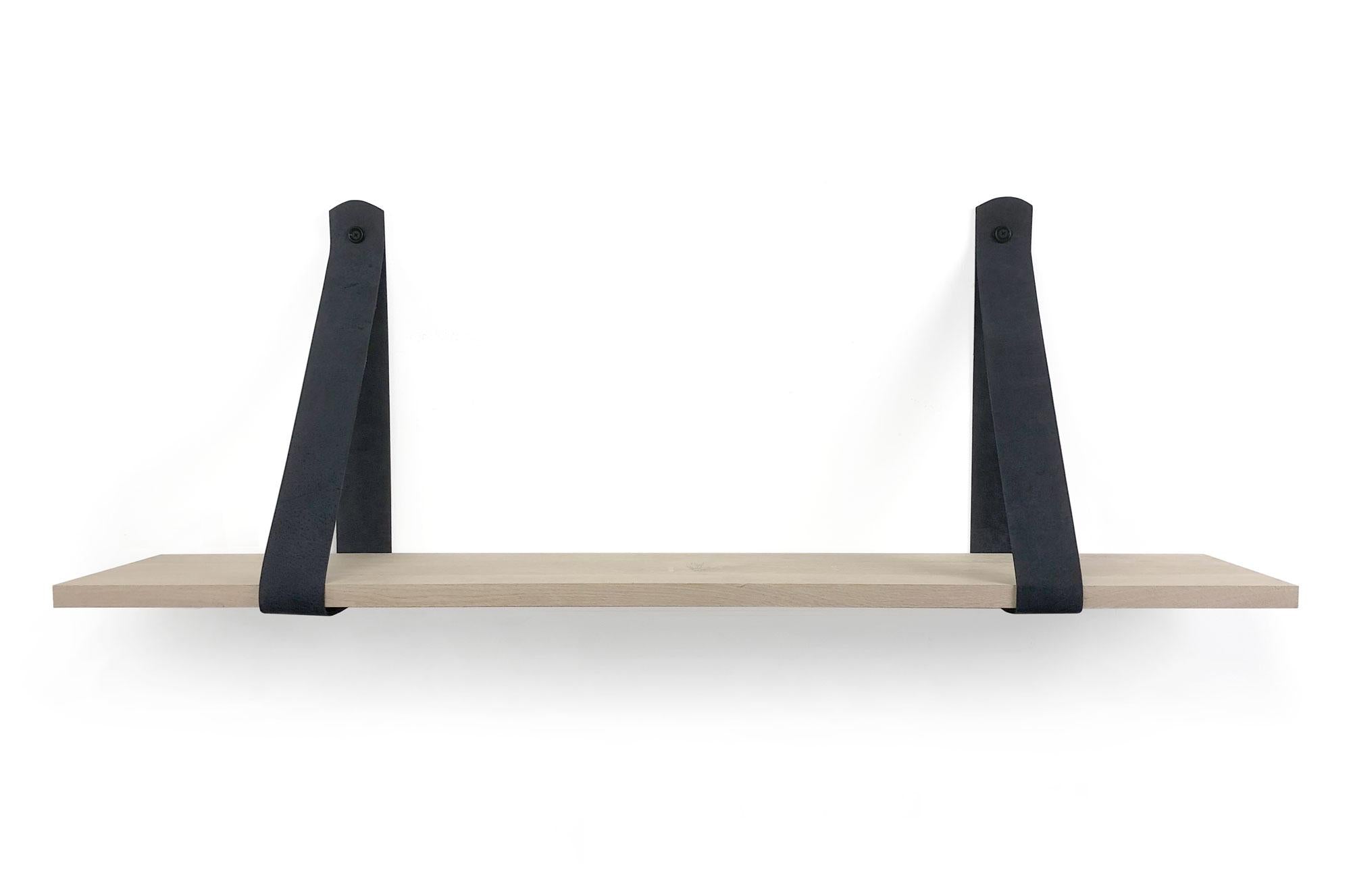 Woodbrothers Eiken 18mm wandplank recht 90x20cm + leren riem zwart