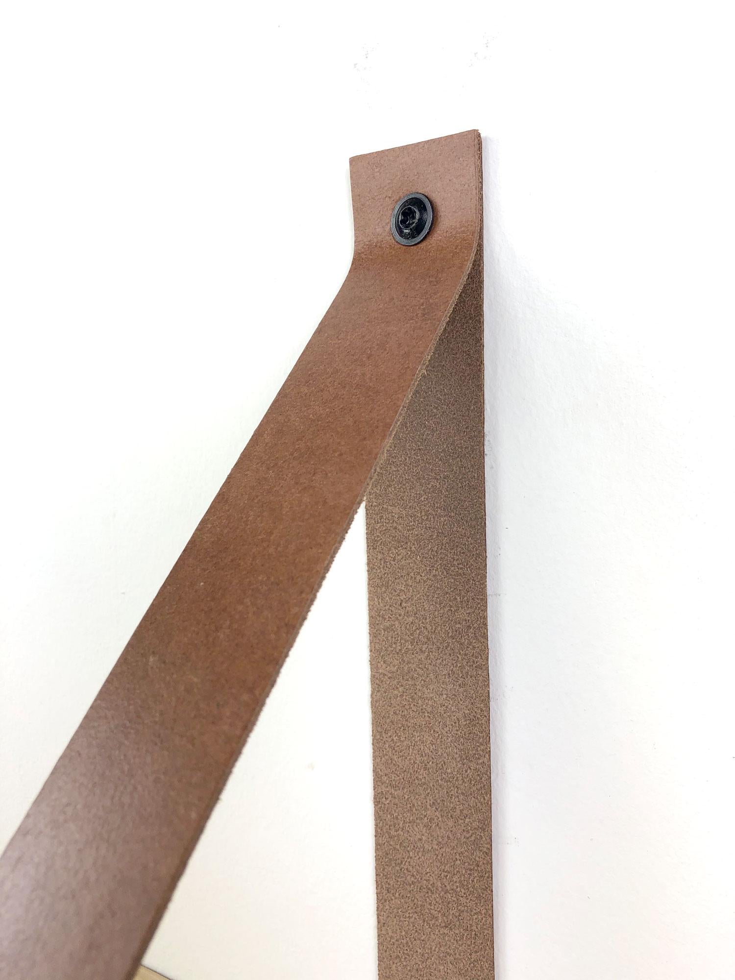 Woodbrothers Eiken wandplank massief recht 100x30cm + leren riem bruin