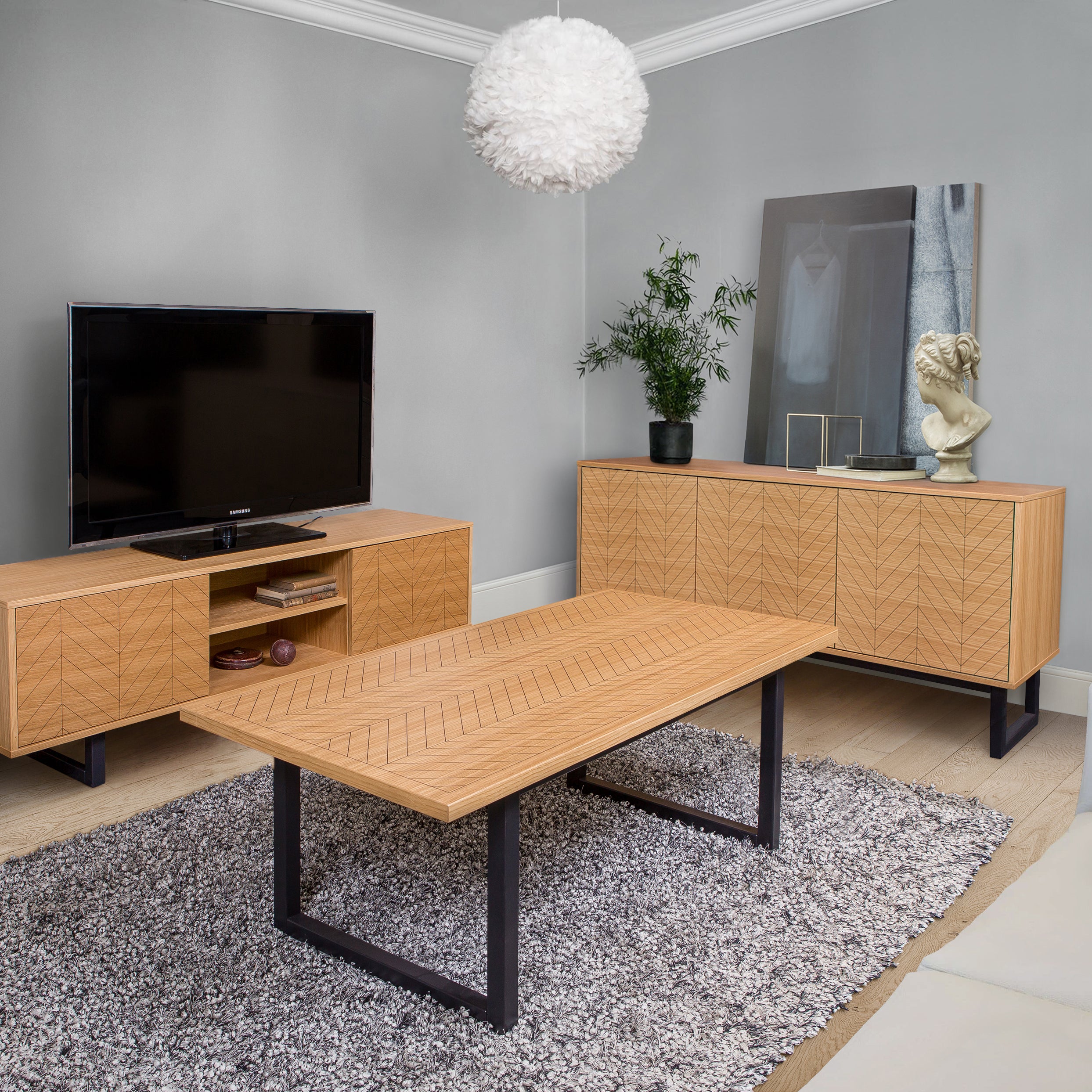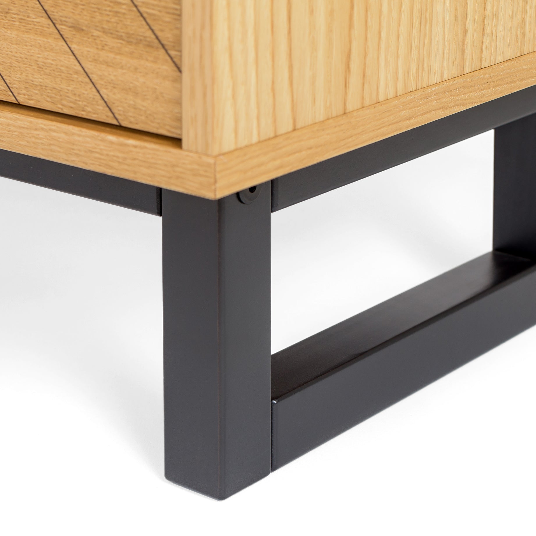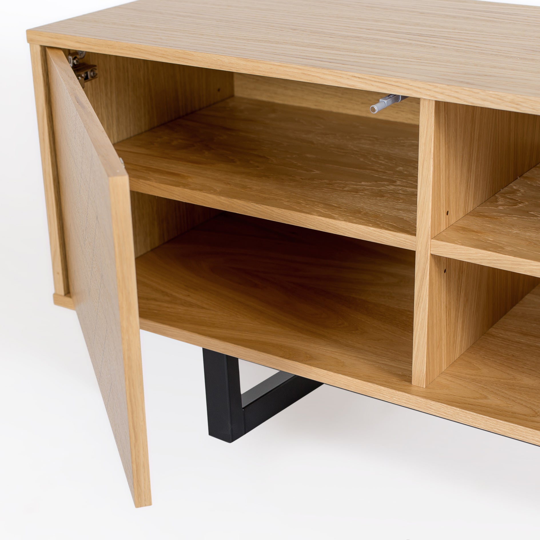 - De kast is gemaakt van spaanplaat met eiken fineer