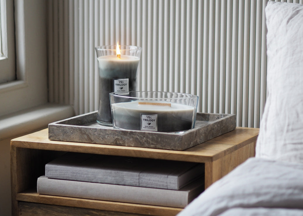 Deze Woodwick Trilogy Large kaars is 10 cm breed, 17,5 cm hoog, heeft minimaal 130 branduren en is gegoten in een mooi decoratief glas. Natuurlijk is ook deze WoodWick kaars voorzien van een mooi houten deksel.