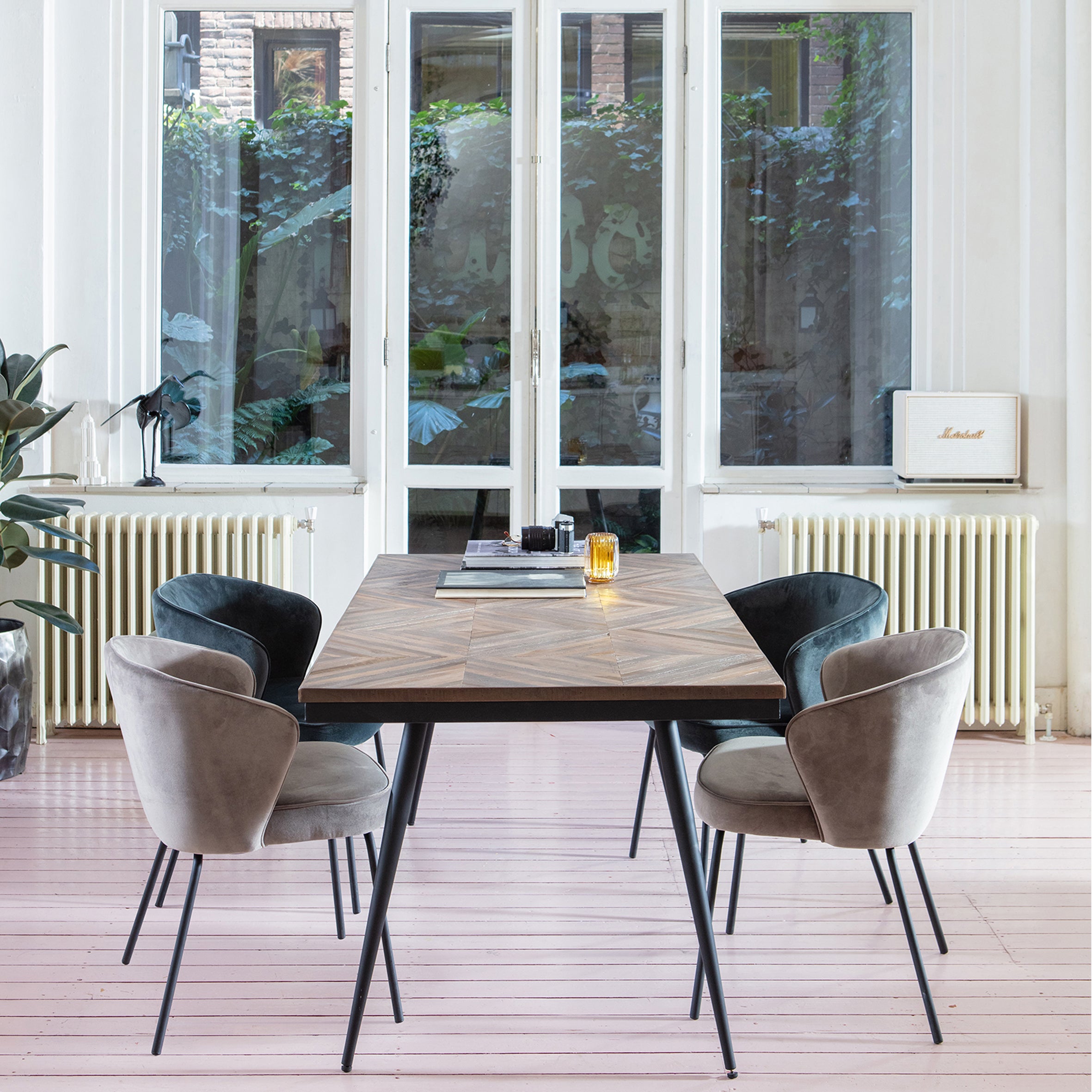 De zitting van de Admit eetkamerstoel van WOOOD is gestoffeerd met een trendy Colmar stof. Deze stof staat bekend om zijn zachtheid en elegante textuur die warmte in huis brengt. Met een Martindale van 100.000 is de stof geschikt voor intensief gebruik. Door de dichte weeftechniek zal de stof niet snel slijten of scheuren.