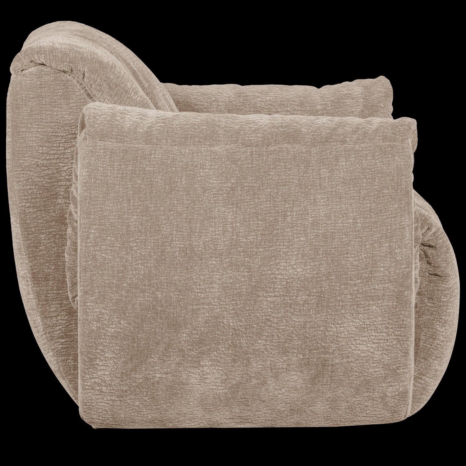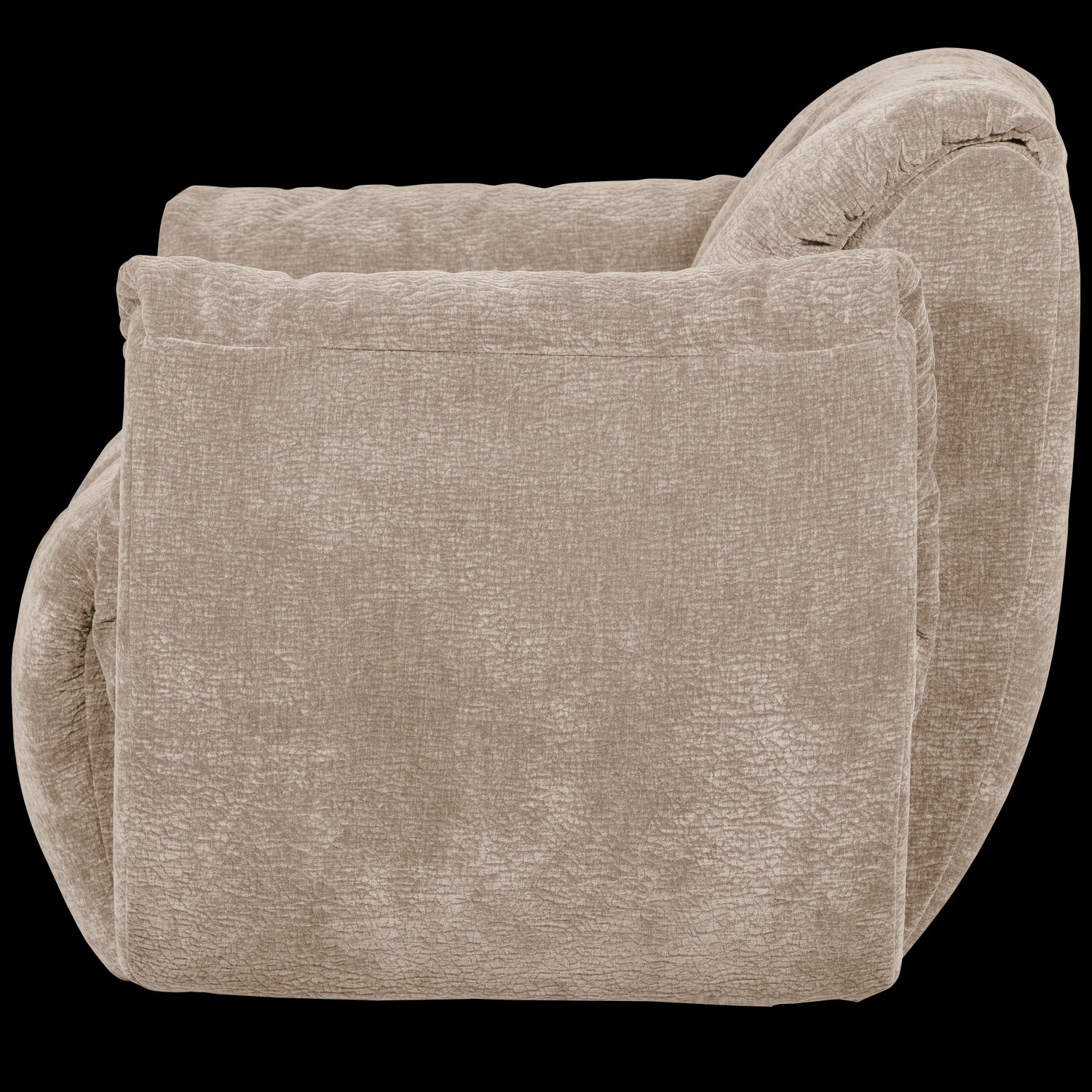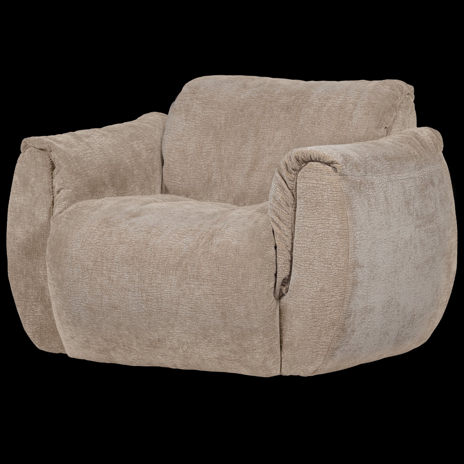 Onze Drew textuurstof heeft een zachte grip en voelt comfortabel aan. De stof is gemaakt van 100% polyester en valt op door zijn bijzondere 3D-patroon met een onregelmatige, golvende print, wat zorgt voor een sprekende diepte in het meubelstuk. Bovendien is de stof voorzien van een luxe matte glans wat zorgt voor een hoogwaardige uitstraling. De vulling van de Baggy bestaat uit verschillende lagen/soorten foam met bovenop een laag van veren en siliconenvezels.
