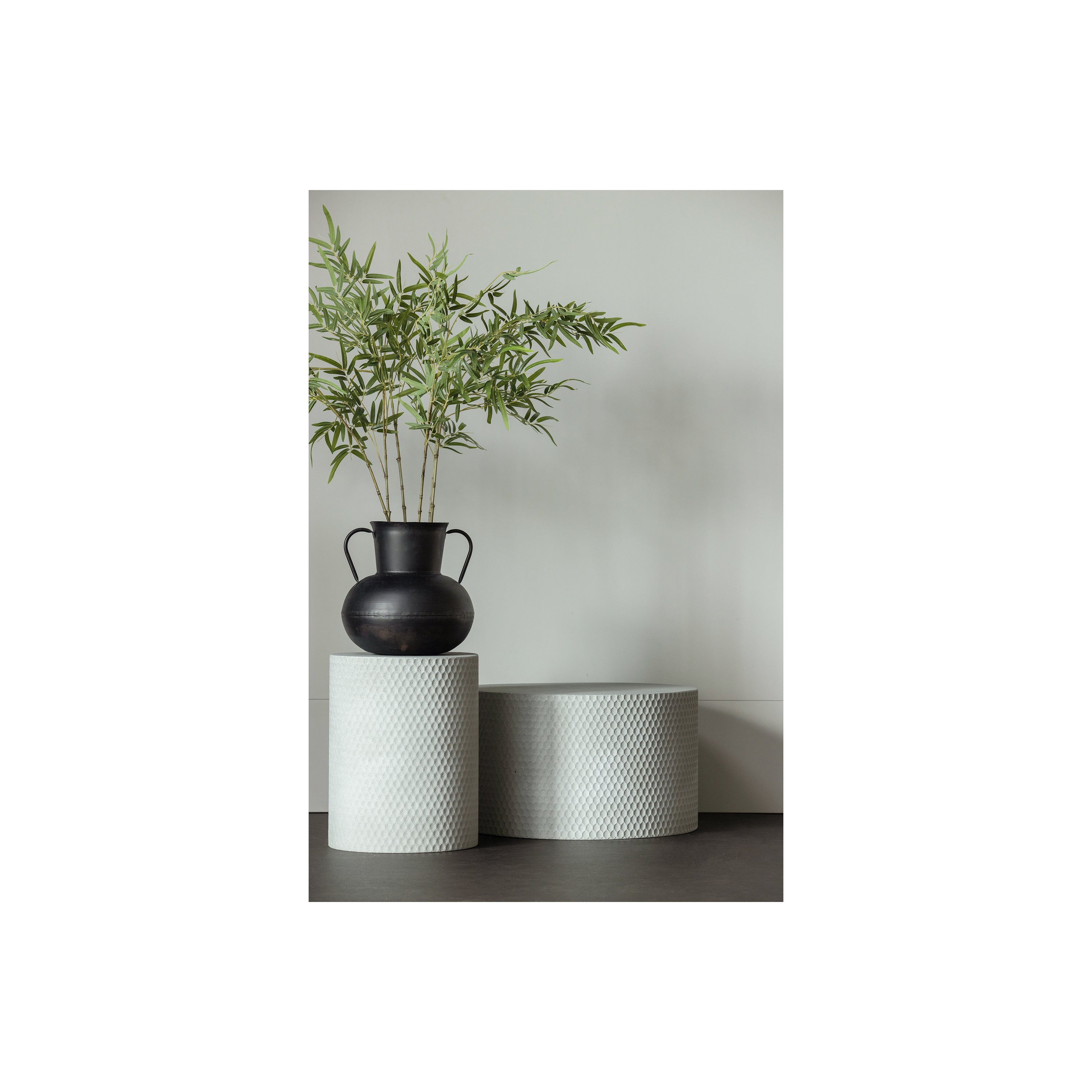 De Bambusa heeft een hoogte van 100 cm en is, wanneer volledig uitgewaaierd, 110 cm doorsnee. De zes stengels zijn elk ø0,5 cm. De zwarte, kunststoffen pot heeft een inhoud van foam en wordt verzwaard door cement. De pot heeft een hoogte van 13 cm, ø16 cm bovenzijde en ø13 cm onderzijde. De Bambusa kunstplant weegt een kleine 2 kg.