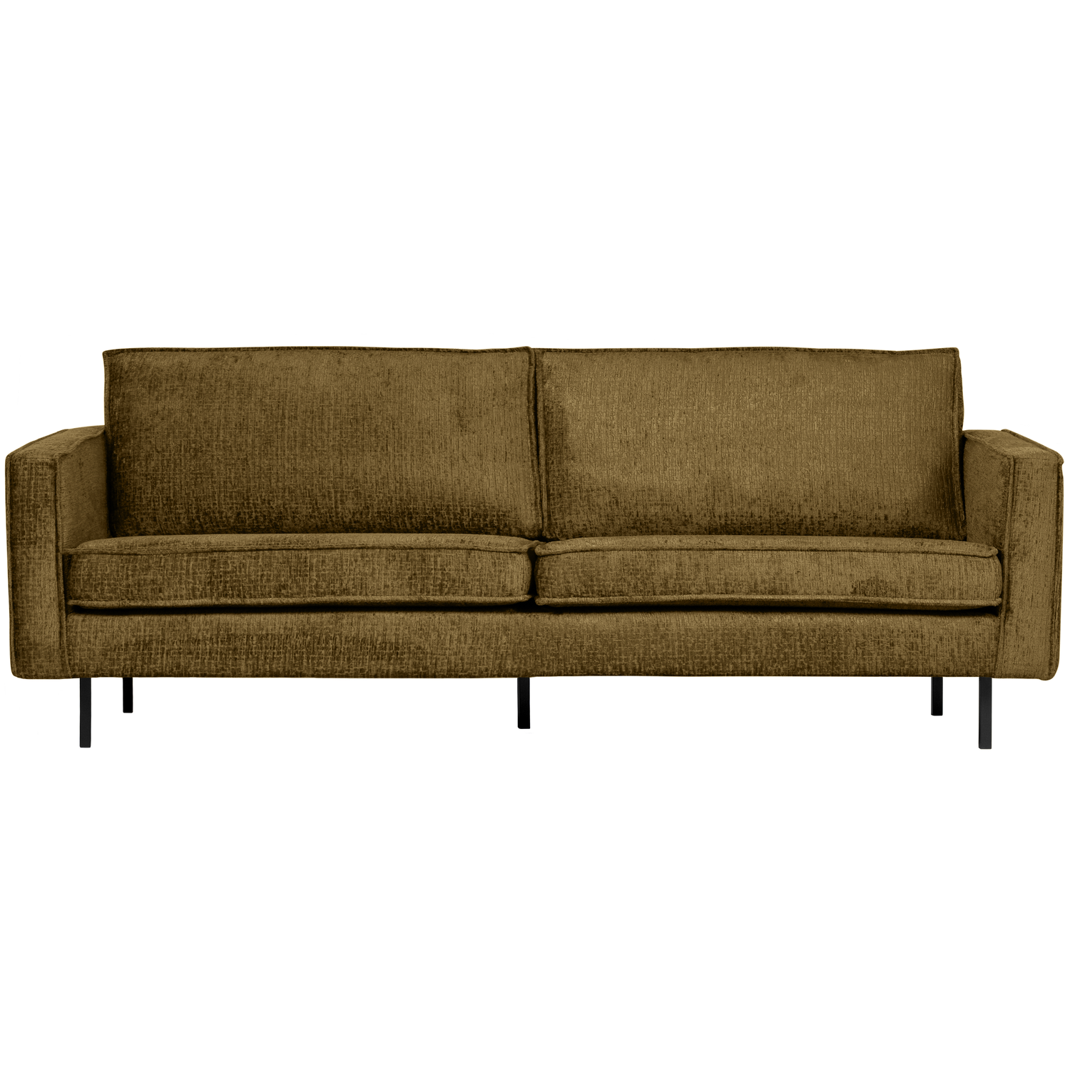 De Rodeo bank is opgebouwd uit een combinatie van massief hout, spaanplaat, polyurethaan schuim met een dichtheid van 25 kg/m3 en een zigzag vering. De zitting bevat een polyurethaan schuim met een dichtheid van 30 kg/m3 (T3037). De rugleuning bestaat uit een combinatie van 70% gesneden schuim en 30% siliconen. Deze Rodeo is bekleed met een grove velvet. Onze rijke Ferra velvet heeft een opvallende structuur, wat zorgt voor een luxe uitstraling en bijzondere glans. De zachte stof is gemaakt van 100% polyester, wat het onderhoud heel gemakkelijk maakt. De Ferra structuur velvet heeft een Martindale van 85.000 en is dus goed bestand tegen krassen, verkleuring en pillen. Ferra voelt zeer zacht aan vanwege de chenille garens, de jacquard weeftechniek zorgt voor een volumineuze bekleding. Afmetingen