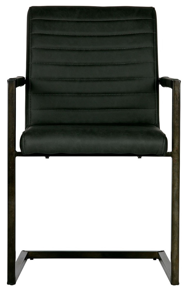 Materiaal Het frame van de stoel is van metaal en afgewerkt met een zwarte poedercoating. De foam in de zitting is Polyurethaan schuim (normaal schuim) met een dikte van 25 kg/m3. De rugleuning heeft een dikte van ditzelfde foam in 21 kg/m3. De zitting is bekleed met een PU leren stof met vintage look.