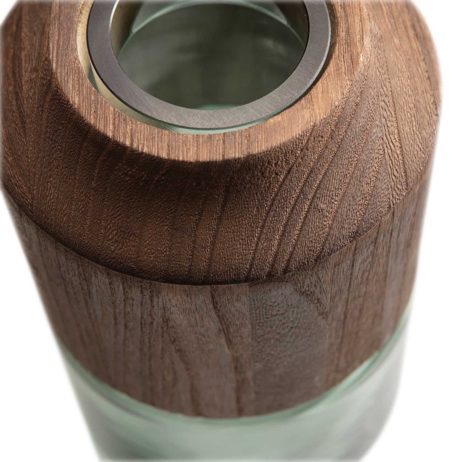 Geef een extra dimensie aan jouw favoriete bloemen met deze vaas met houten detail. Vaas Celeste komt uit de Exclusive collectie van het Nederlandse interieurmerk WOOOD en is een stijlvol item met een stoere touch. De blauwgroene kleur van het geblazen glas heeft een sfeervolle, warme ondertoon en laat zich goed combineren met de warmgekleurde houten kap. Artikelkenmerken
