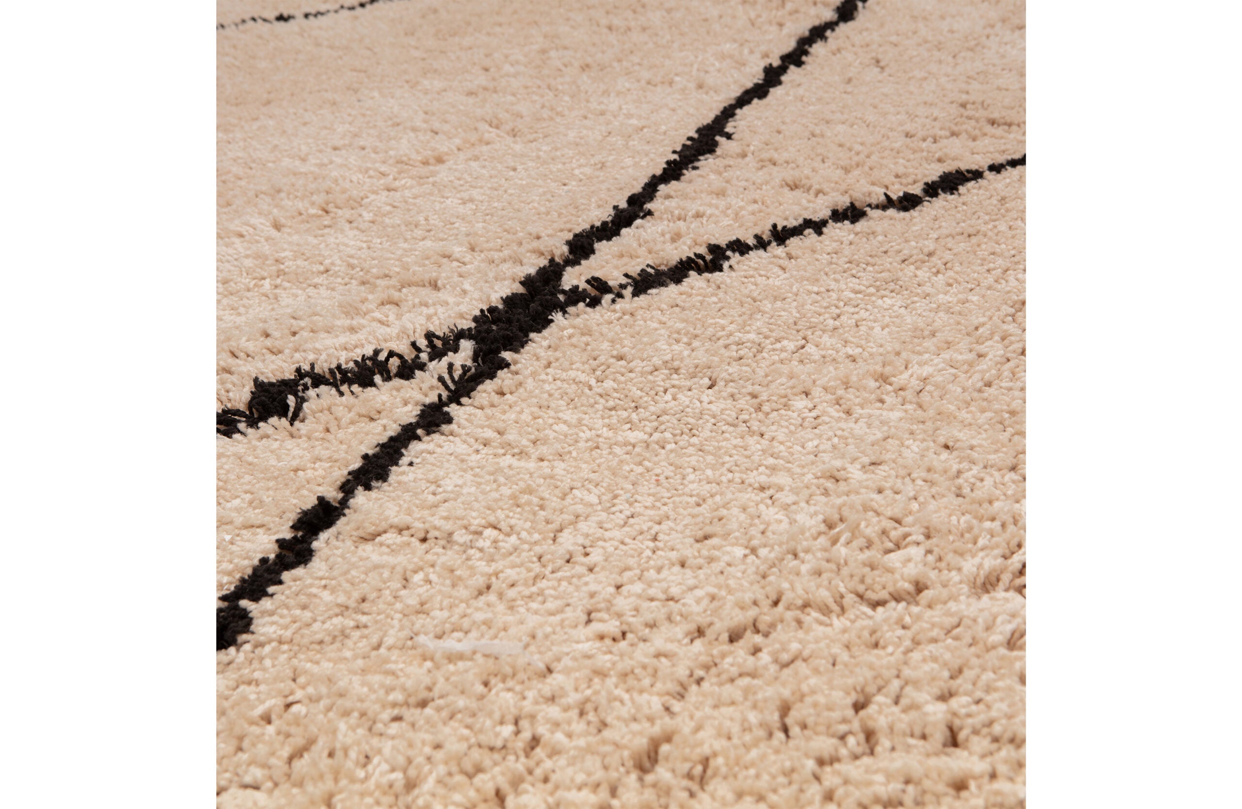- Warm hoogpolig vloerkleed met abstract lijnenspel