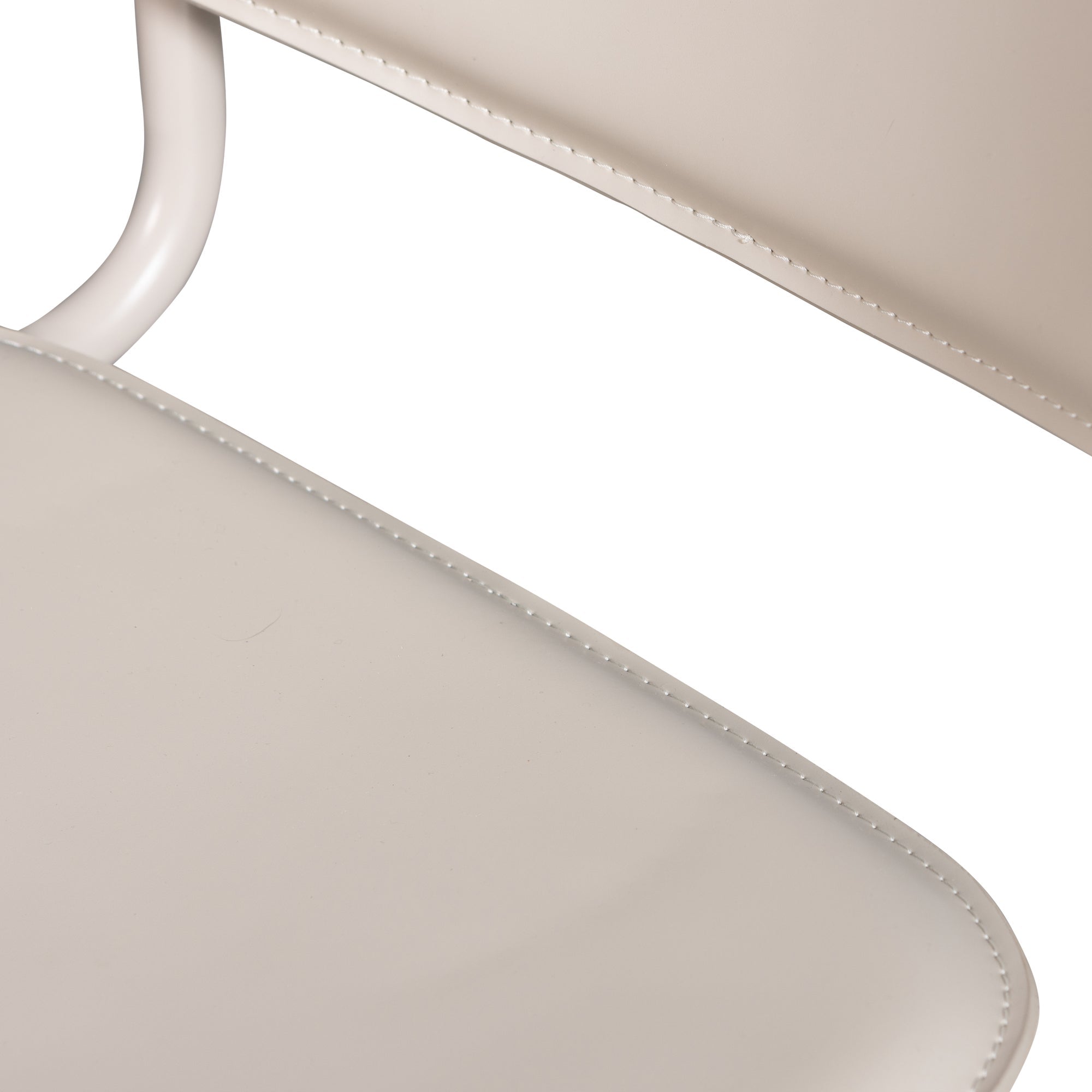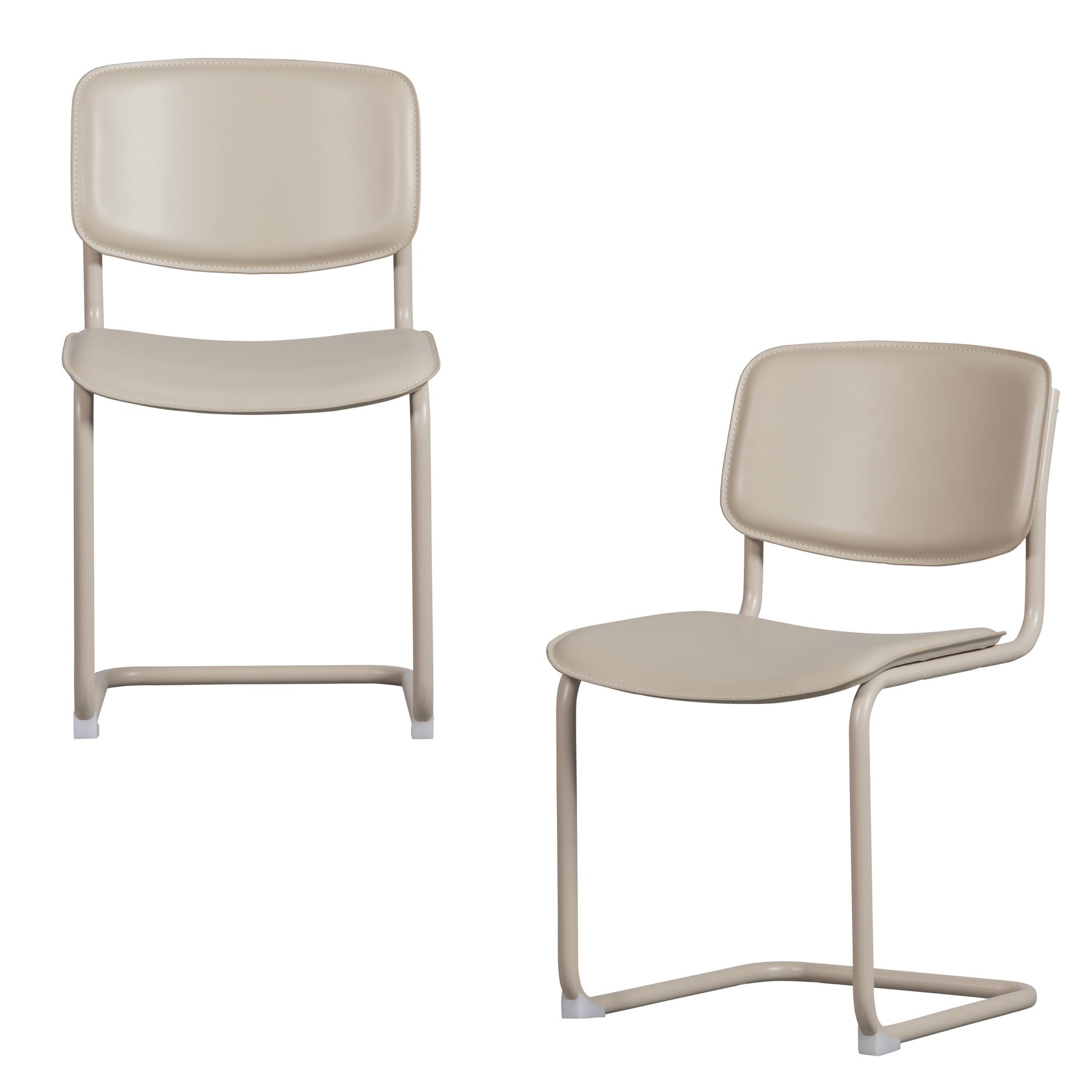 Onze imitatie leer heeft een unieke look en een zachte grip. Het imitatie leer bestaat uit 100% polyester en heeft een Martindale van >100.000, wat de stof uiterst slijtvast maakt. De microvezel is gebreid van zeer kleine, synthetische vezels. Deze productietechniek zorgt voor de stevigheid en een fijn, zacht gevoel. De stof is zeer kleurvast en blijft stevig in vorm. Het onderstel van de eetkamerstoel is gemaakt van metaal met een matzwarte poedercoating. Afmetingen