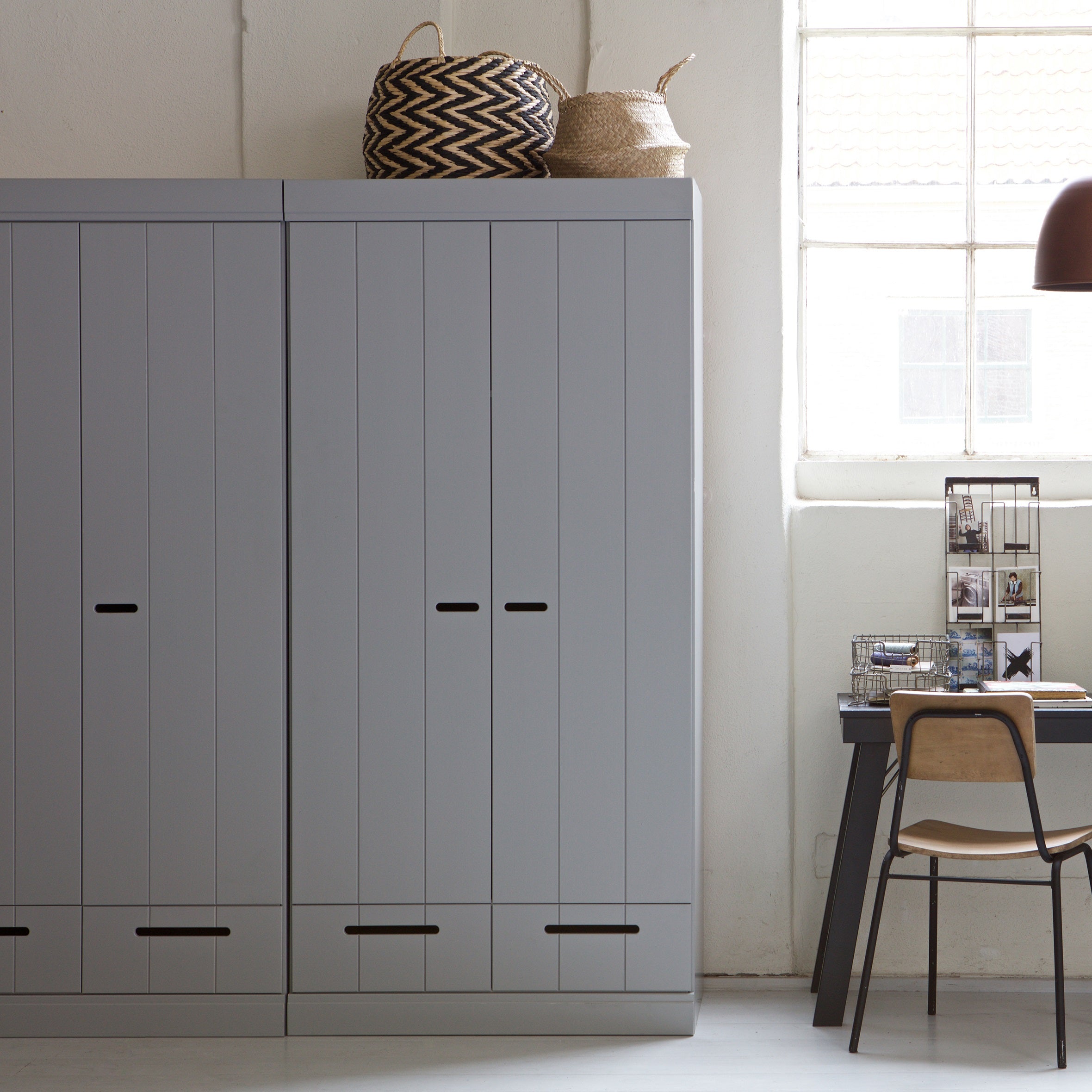 Woood Connect Kledingkast H 195 x B 94 x D 53 cm - Lades, Plank en Roede - Grijs