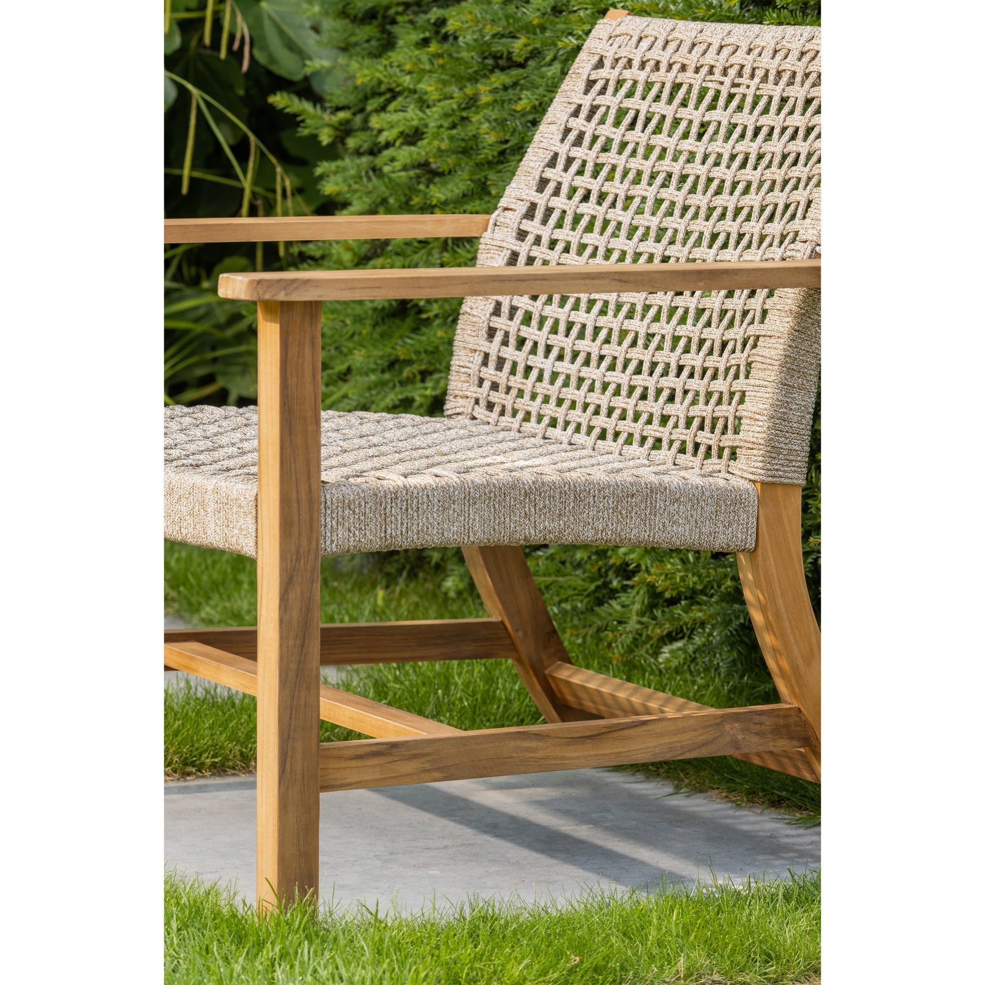 De natuurlijke afwerking van het teakhout zorgt voor een tropische maar ook luxe uitstraling van de fauteuil. Het wijde potenframe en ruime wicker zitoppervlak zorgt ervoor dat het design een relaxt zitoppervlak aanbiedt. Outdoor: