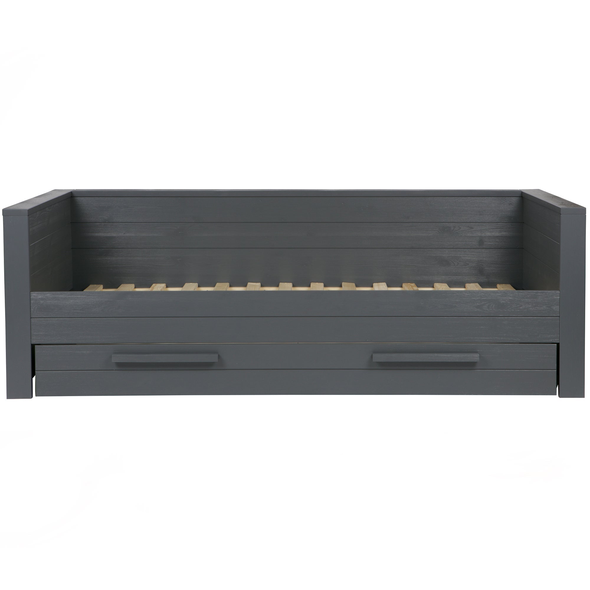 WOOOD Dennis Bedbank incl. matras/bedlade 219x73x101 (bxhxd) is handig voor een kinder- en tienerslaapkamer. Niet alleen om te slapen, maar ook handig bij het gamen óf tv kijken op de slaapkamer. Deze Dennis bedbank incl. matras/bedlade is voor één-persoon en komt uit de collectie van het Nederlandse merk WOOOD. Deze bedbank is gemaakt van, FSC gecertificeerd, grenenhout met een staal grijze finish en heeft een geborstelde afwerking waardoor het bed een éxtra robuuste en stoere uitstraling krijgt. De matras/bedlade wordt standaard geleverd als opberglade, maar wanneer er een lattenbodem met lint (90x200) en een matras (90x190x12) wordt toegevoegd kan de lade ook worden gebruikt als logeerbed. De Dennis bedbank wordt exclusief matras (90x200) en inclusief lattenrol geleverd. Artikelkenmerken