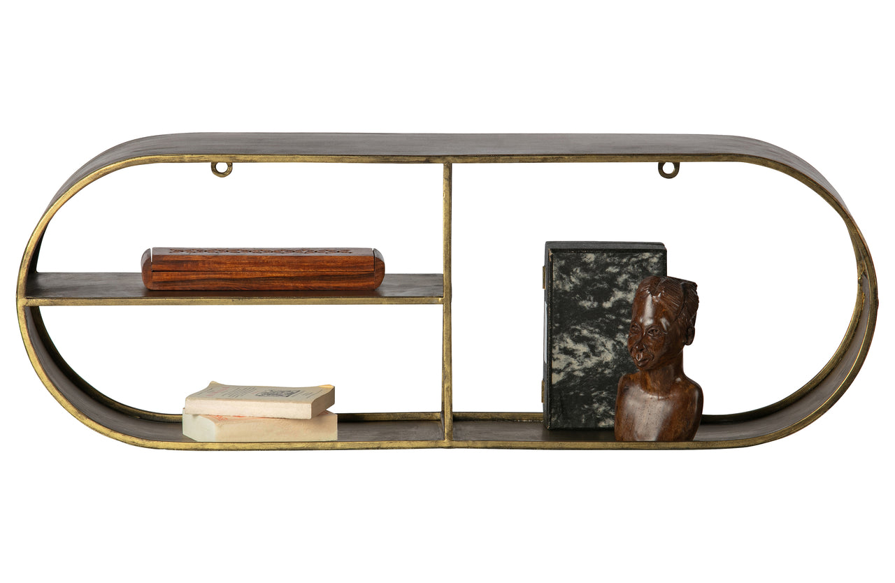 Dit Eclips wandrek heeft een open karakter en komt uit de collectie van het Nederlandse merk WOOOD. Eclips is gemaakt van staal en is voorzien van een antique brass afwerking. Praktisch als opberger aan de wand, maar ook leuk als decoratie. Eclipse heeft aan de linkerzijde een plank van 34 cm breed. Het onderste vak heeft een hoogte van 11,5 cm. Het bovenste vak heeft een hoogte van 12 cm. Het open gedeelte aan de rechterzijde is 34 cm breed en 24,5 cm hoog. Het maximale draaggewicht van de bovenste plank is 5 kg, van de middelste plank 3 kg en de onderste plank 5 kg.