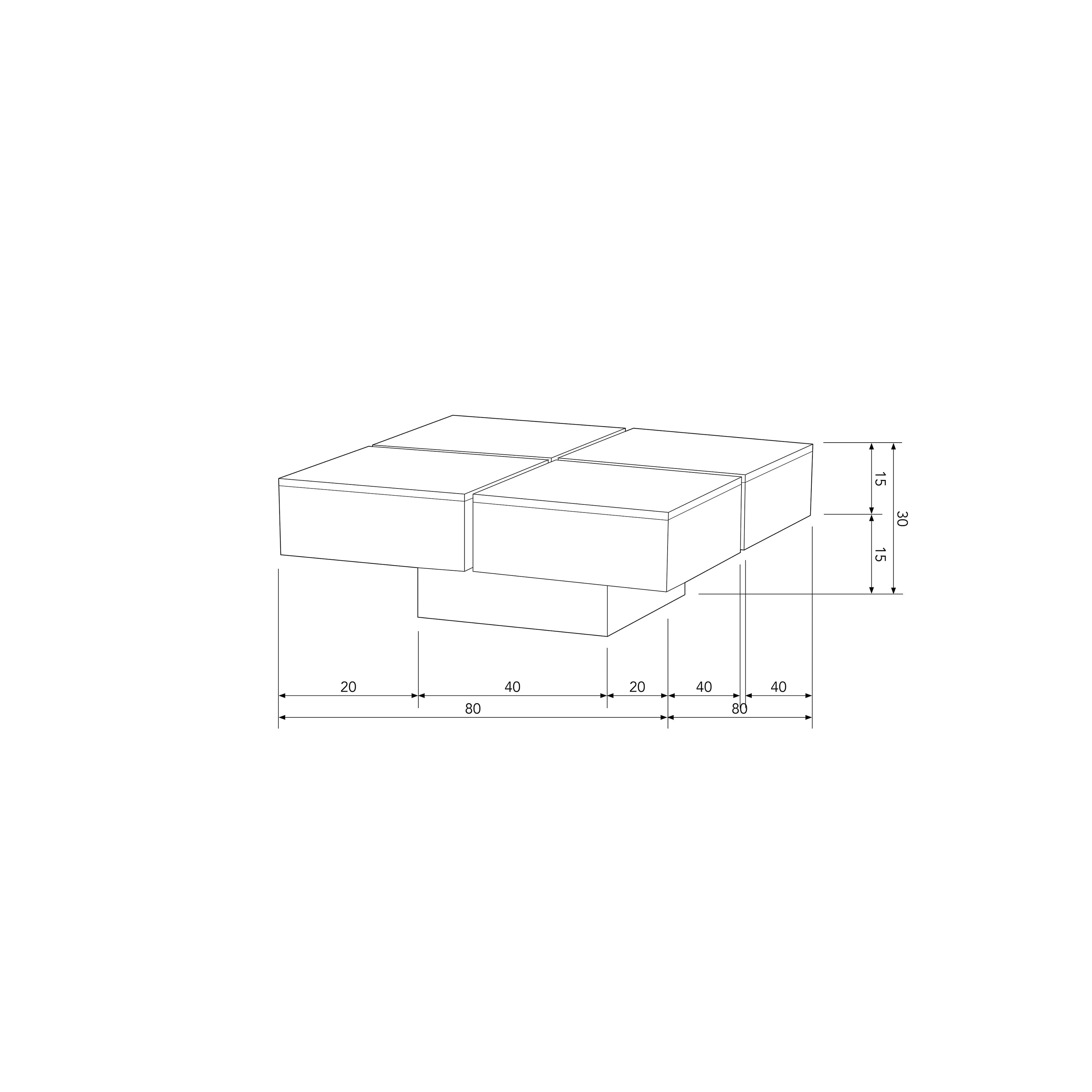 - 4x blad HxBxD: 15x40x40 cm (is hol)