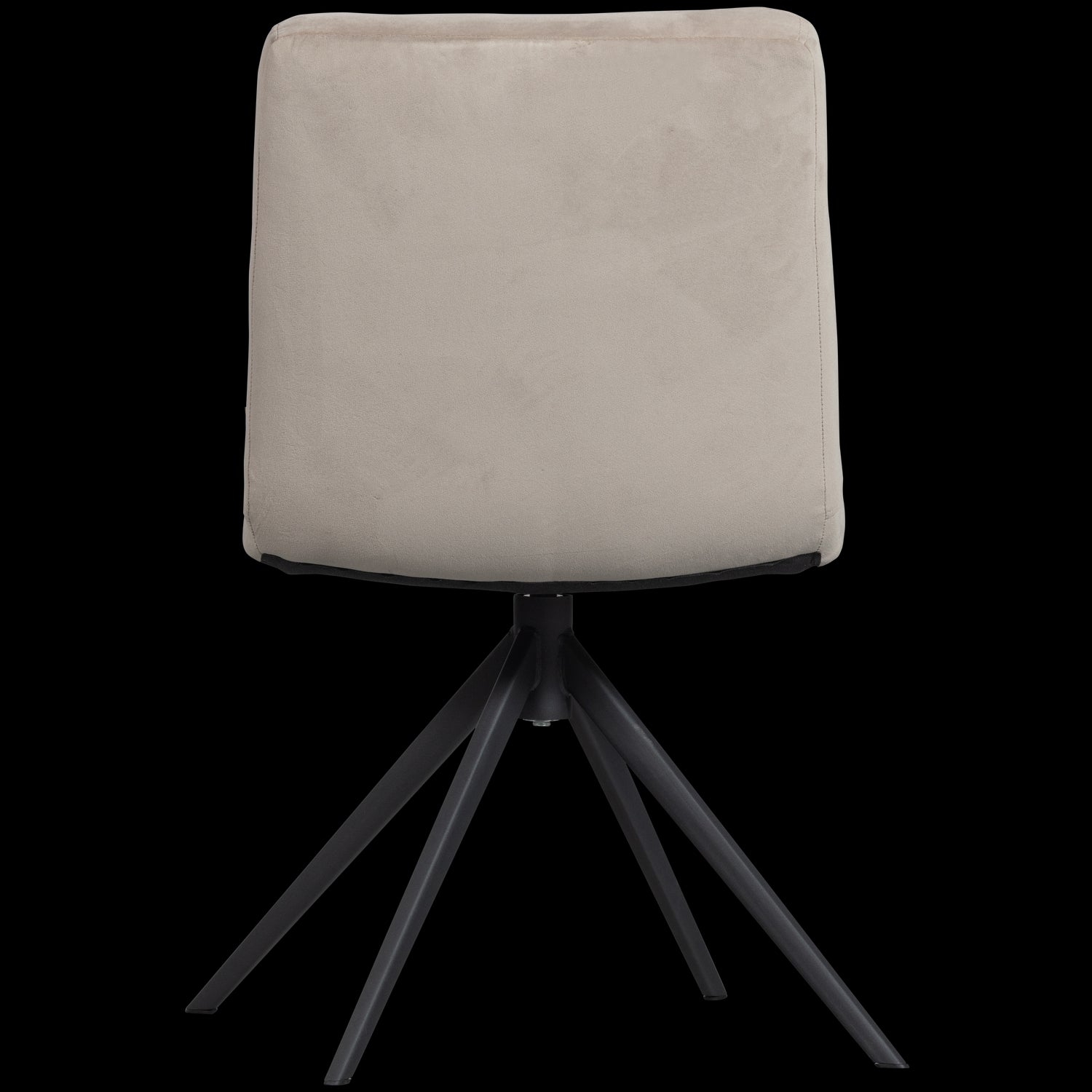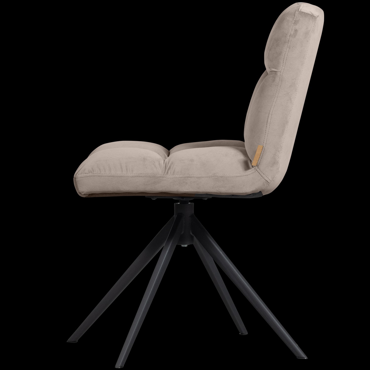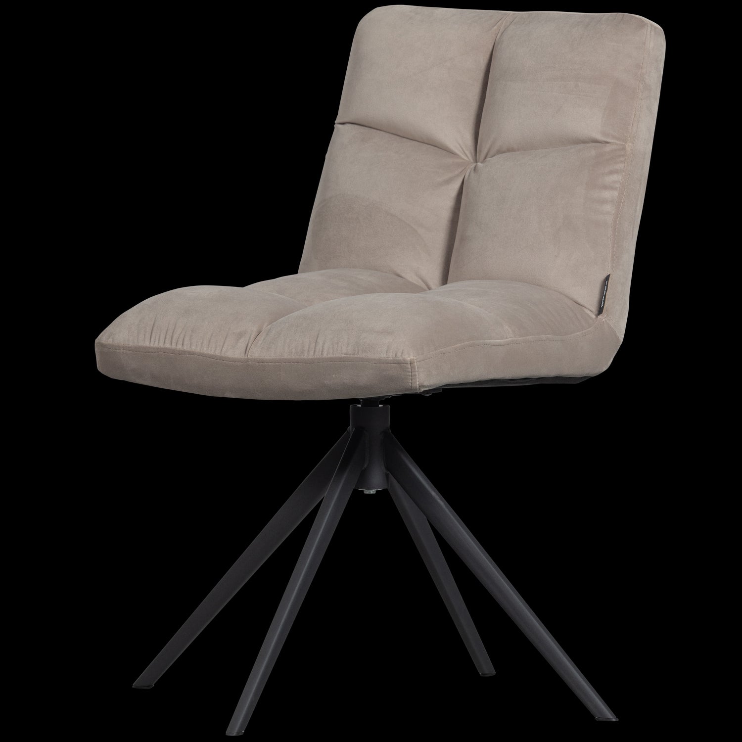 Vinny is bekleed met een matglanzende velvet. De samenstelling van 100% polyester maak de draaifauteuil zeer eenvoudig in onderhoud. De Vinny heeft een zwart, metalen onderstel met vier poten en een soepel draaisysteem. De polyurethaan schuimvulling geeft een hoog zitcomfort en is dus perfect voor eindeloos lang tafelen!