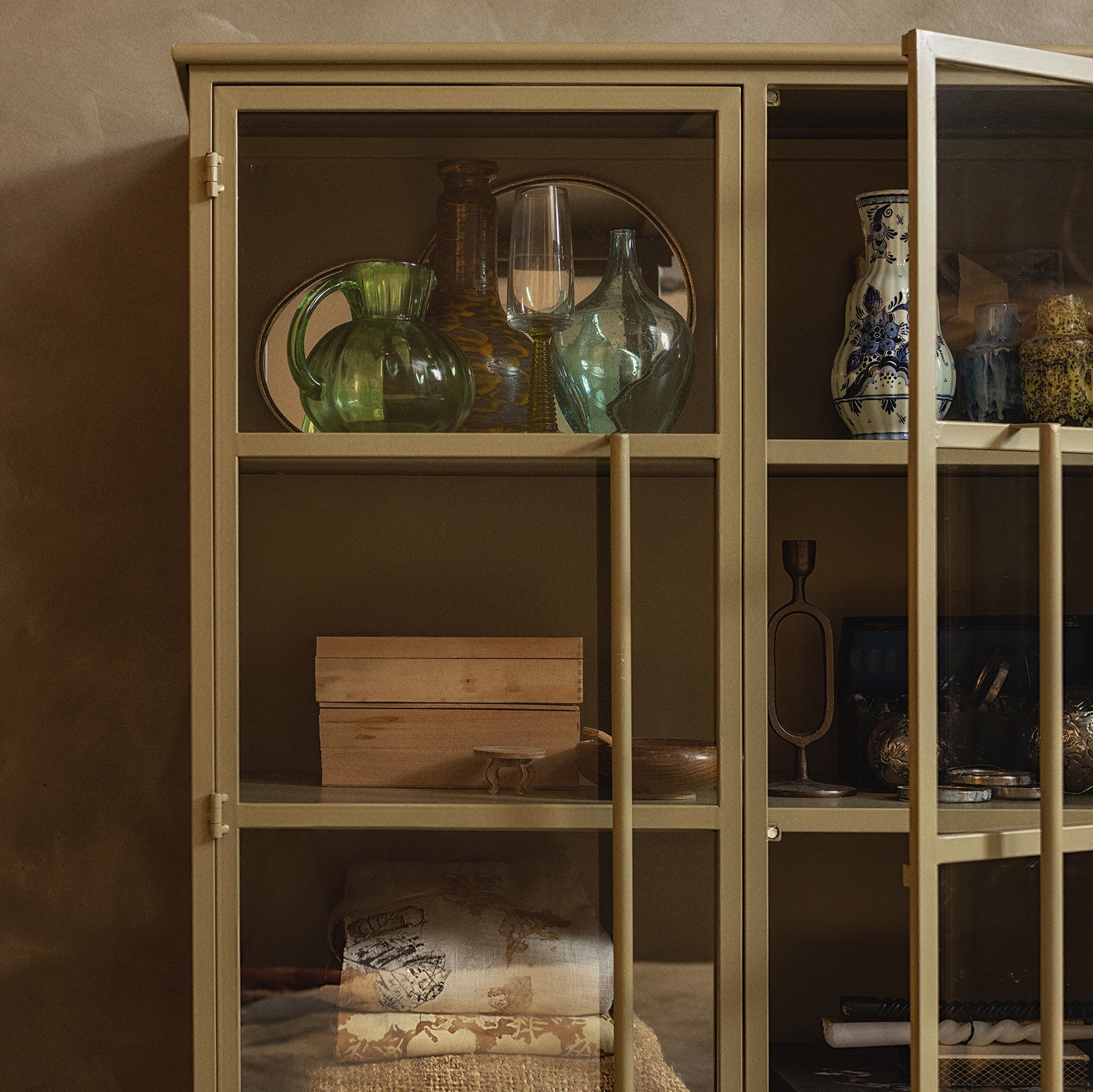 Deze stoere Exhibit vitrinekast komt uit de collectie van het Nederlandse merk WOOOD. De vitrinekast is vervaardigd uit metaal met een trendy, matte coating. De planken zijn gevormd uit hout en bieden een mooie presentatieplaats voor jouw favoriete woonaccessoires.