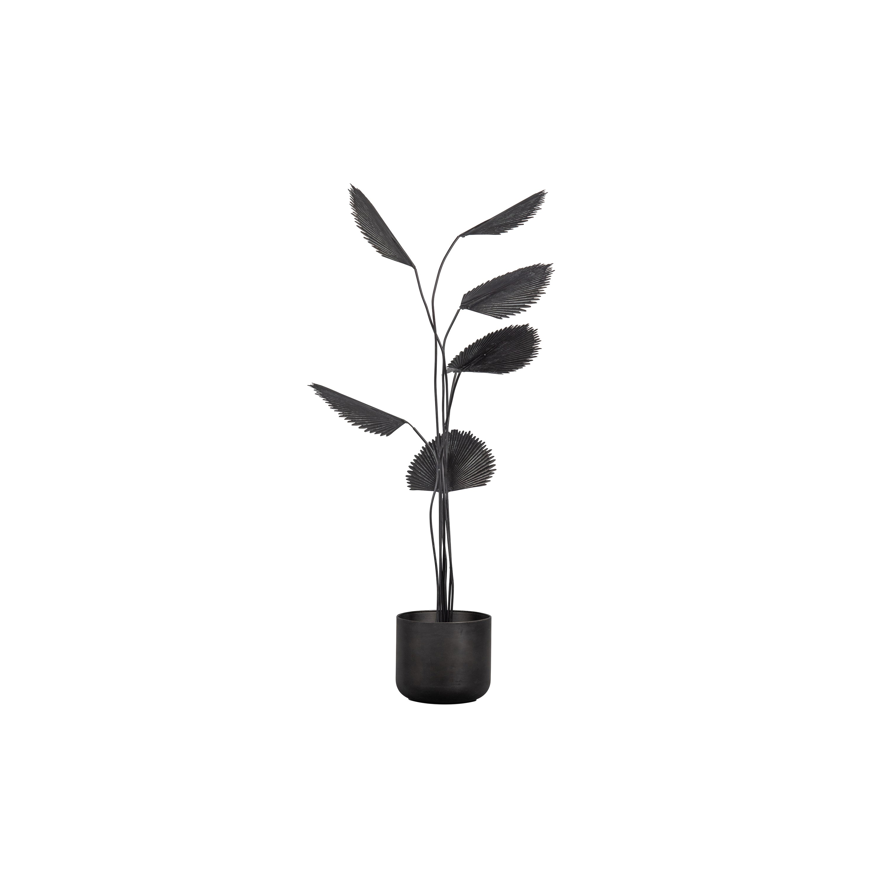 Deze kunstplant met een stoer randje komt uit de collectie van het Nederlandse merk WOOOD. De Forever plant is gemaakt van een dunne laag metaal en afgewerkt met een geborstelde zwarte coating, dit zorgt voor een rauw randje. De metalen stengels zijn voorzichtig te buigen naar een eigen gewenste opstelling. De Forever kunstplant heeft een gemiddelde hoogte van 141 cm en meet 50 cm tussen de buitenste bladeren. Deze maten zijn dus zelf aan te passen. De Forever plant bevat zeven metalen bladeren met een flexibele stengel. Een blad heeft het formaat van 28x25 cm. De pot is 22 cm hoog met een diameter van 26 cm. Artikelkenmerken