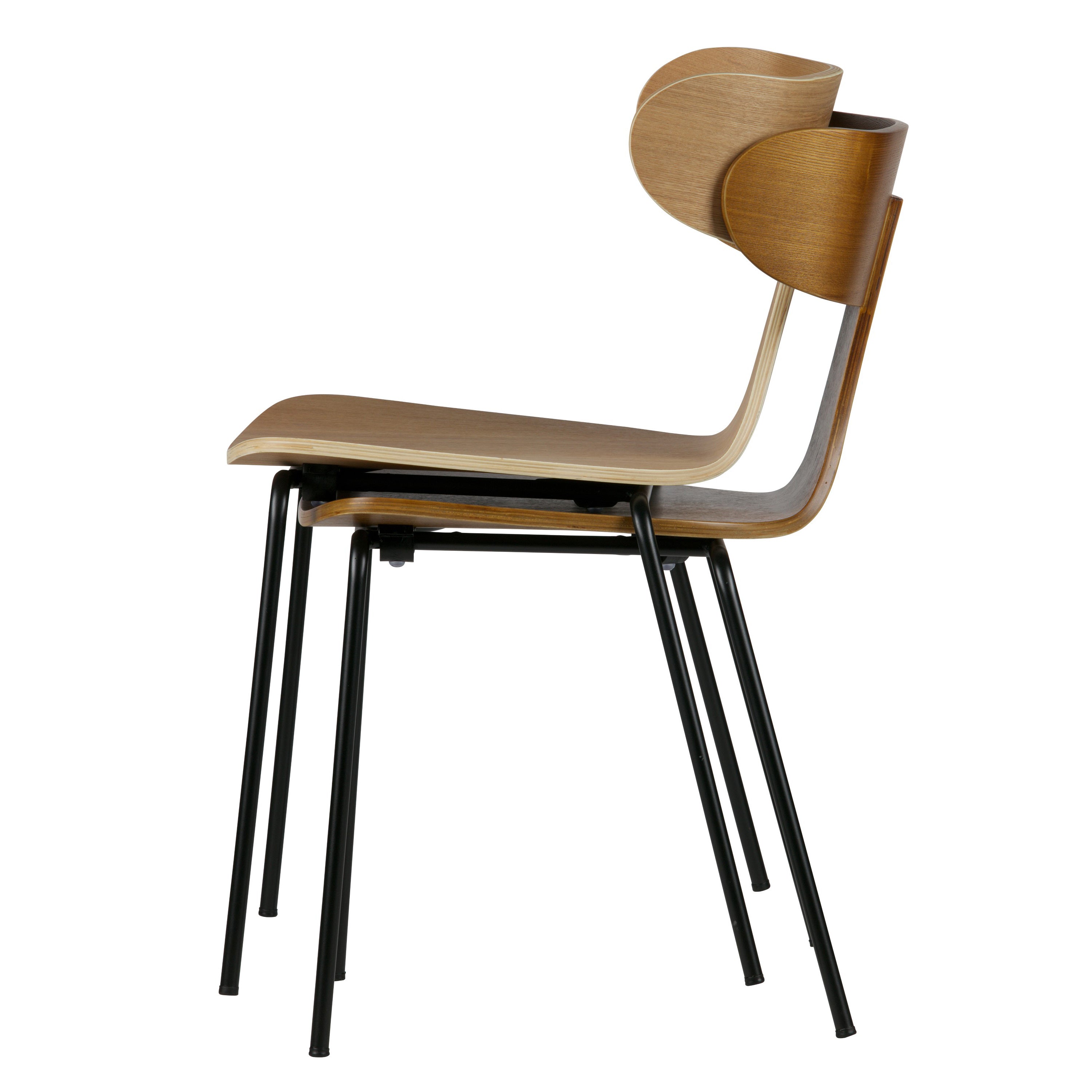 Mooi design Door de combinatie van metaal en hout oogt de stoel stoer, maar ook klassiek. Het ontwerp doet denken aan de retro schoolstoeltjes, maar dan in een modern designjasje. Door de ergonomische vorm is de stoel ideaal voor aan de eettafel.