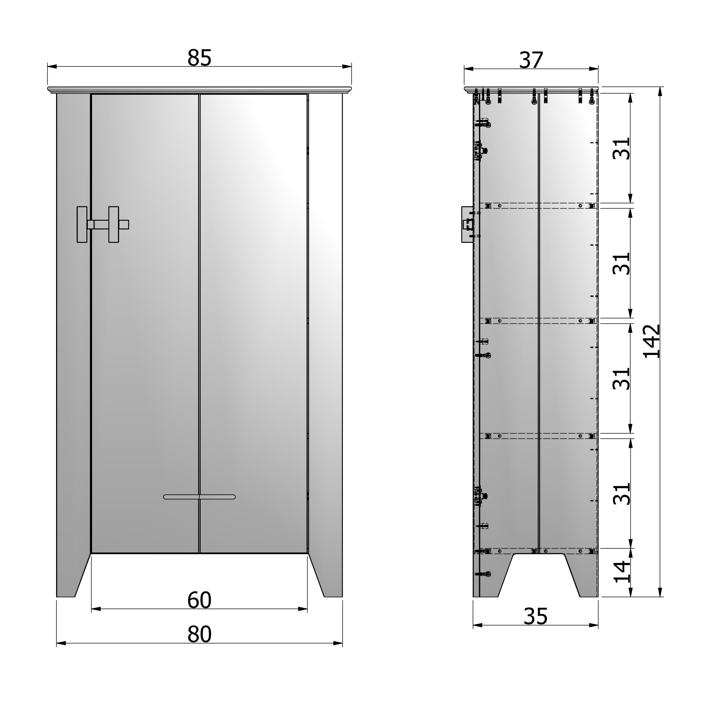 - Deze leuke kast meet H 142 x B 85 x D 38 cm