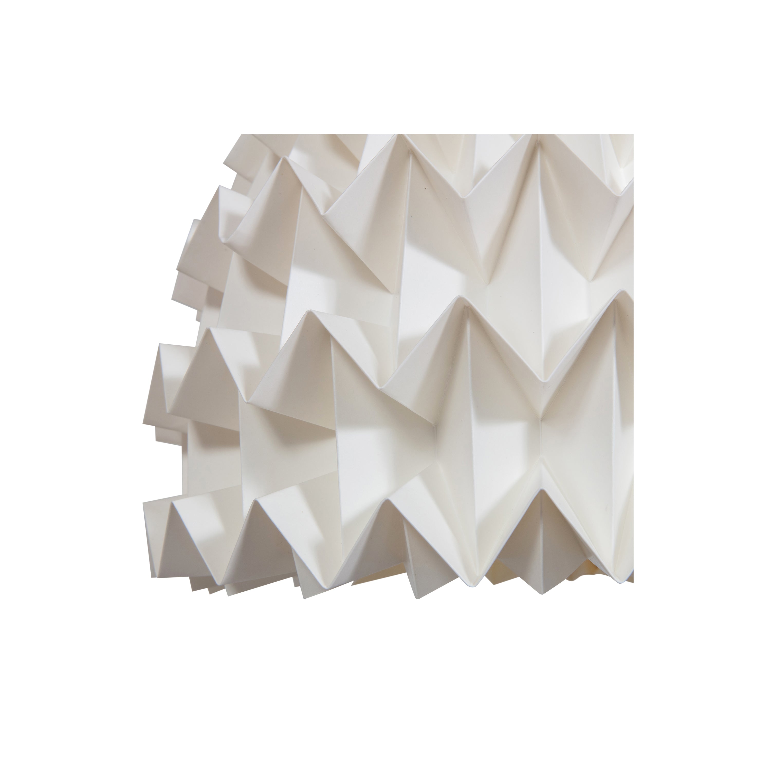 De vouwkunst met papier is een ambachtelijke vormgevingskunst op basis van verstevigd papier. De papieren items uit onze collecties zijn samengesteld met 100% gerecycled papier en heeft in de basis een lichtbruine tint. De papieren items worden met een natuurlijk pigment omgekleurd naar wit of een donkerdere grijs/bruin tint. Onderhoud