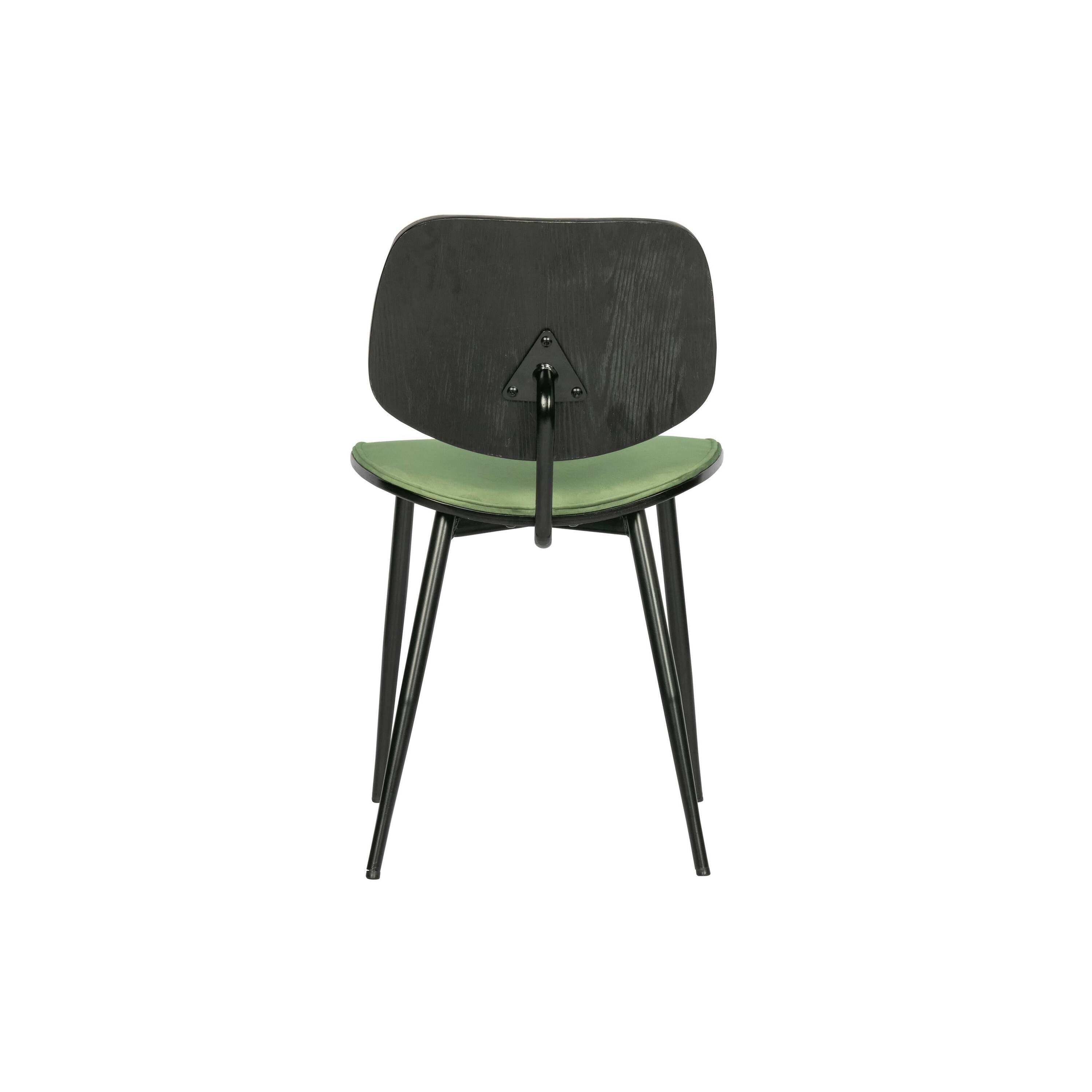Jackie is een slanke en elegante eetkamerstoel uit de collectie van het Nederlandse merk WOOOD Exclusive. De zitting en rugleuning van Jackie zijn gemaakt van multiplex met zwarte afwerking en dit hout is bekleed met een zachte velvet stof in een groene tint. Het slanke onderstel is gemaakt van staal voorzien van een zwarte afwerking. Dankzij het slanke ontwerp kunnen er gemakkelijke meerdere eetkamerstoelen aan de eettafel staan! Artikelkenmerken