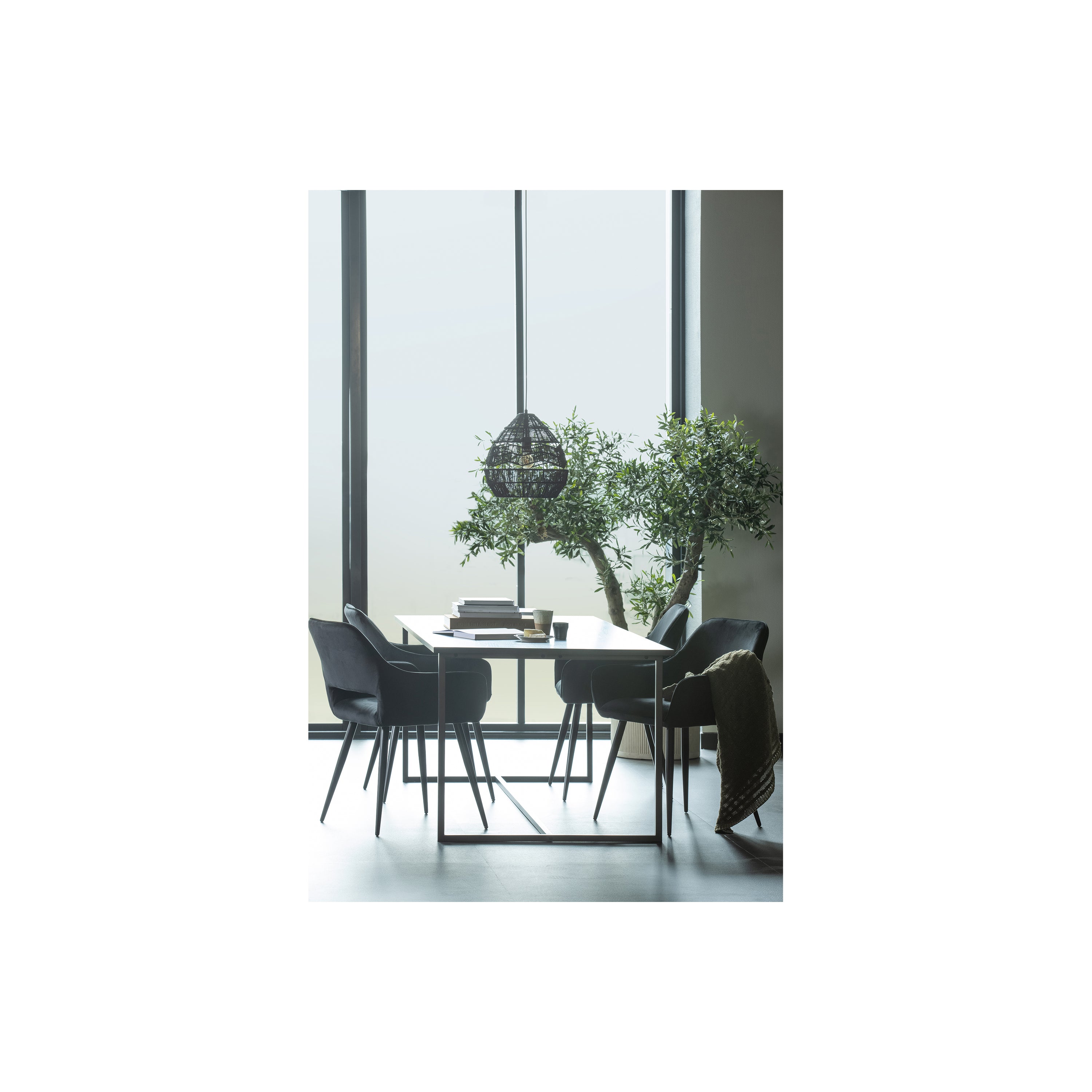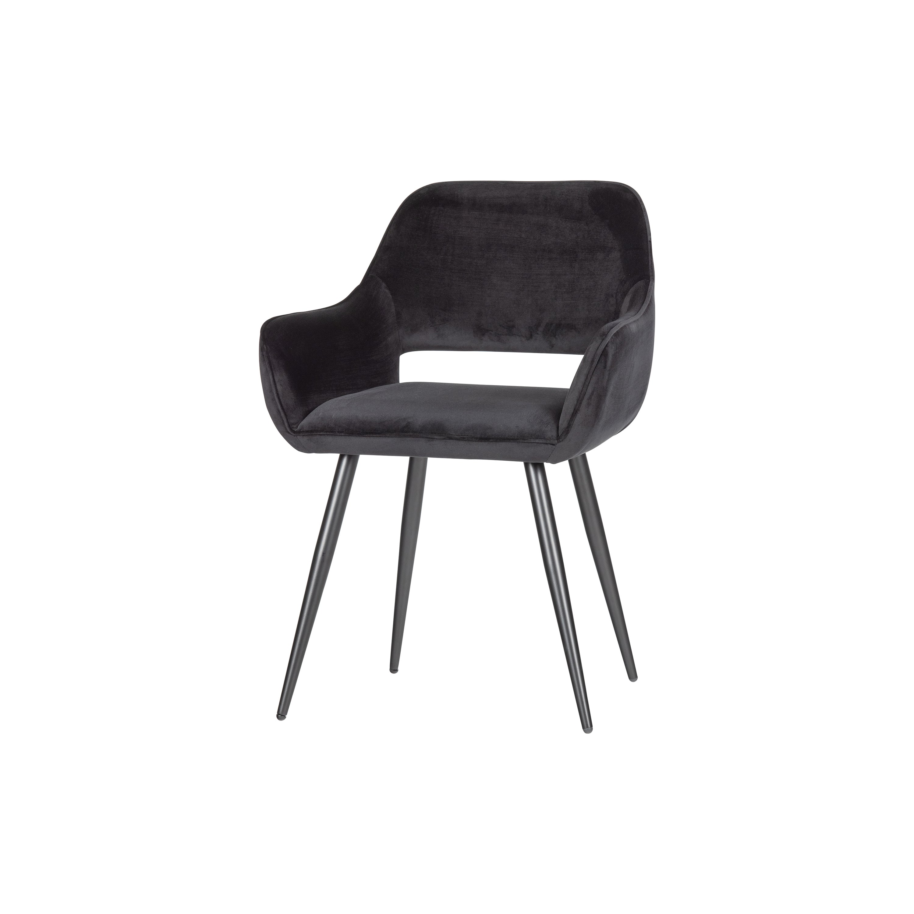 De eigentijdse WOOOD eetkamerstoel Jelle in fluweel gestoffeerd in de kleur zwart heeft een opvallend gevormde zitting. Dit is niet alleen fraai van uiterlijk, maar de stoel zit ook heerlijk. De afmetingen zijn (hxbxd): 80x60x57 cm. De zithoogte is 49 cm, zitdiepte 45 cm en zitbreedte 42 cm. De comfortabele armleggers (hoogte van de vloer gemeten tot bovenkant armlegger 65 cm) verhogen het zitcomfort. Deze eigentijdse eetkamerstoel Jelle past in elke woonstijl. Met zijn fraaie vormgeving en zwart gelakte metalen onderstel is deze stoel helemaal van nu. Belangrijk: de eettafelhoogte, d.w.z. de ruimte tussen de onderkant tafelblad en vloer, moet voldoende zijn om deze stoel te kunnen aanschuiven dus ca. 66 cm. Deze stoel wordt per 2 stuks geleverd en het enige wat je moet monteren is het metalen onderstel aan de zitting. Combineer deze eetkamerstoelen Jelle met de eettafels van het merk WOOOD in het rechthoekig of rond met houten poten of zwart gelakt metalen onderstel.