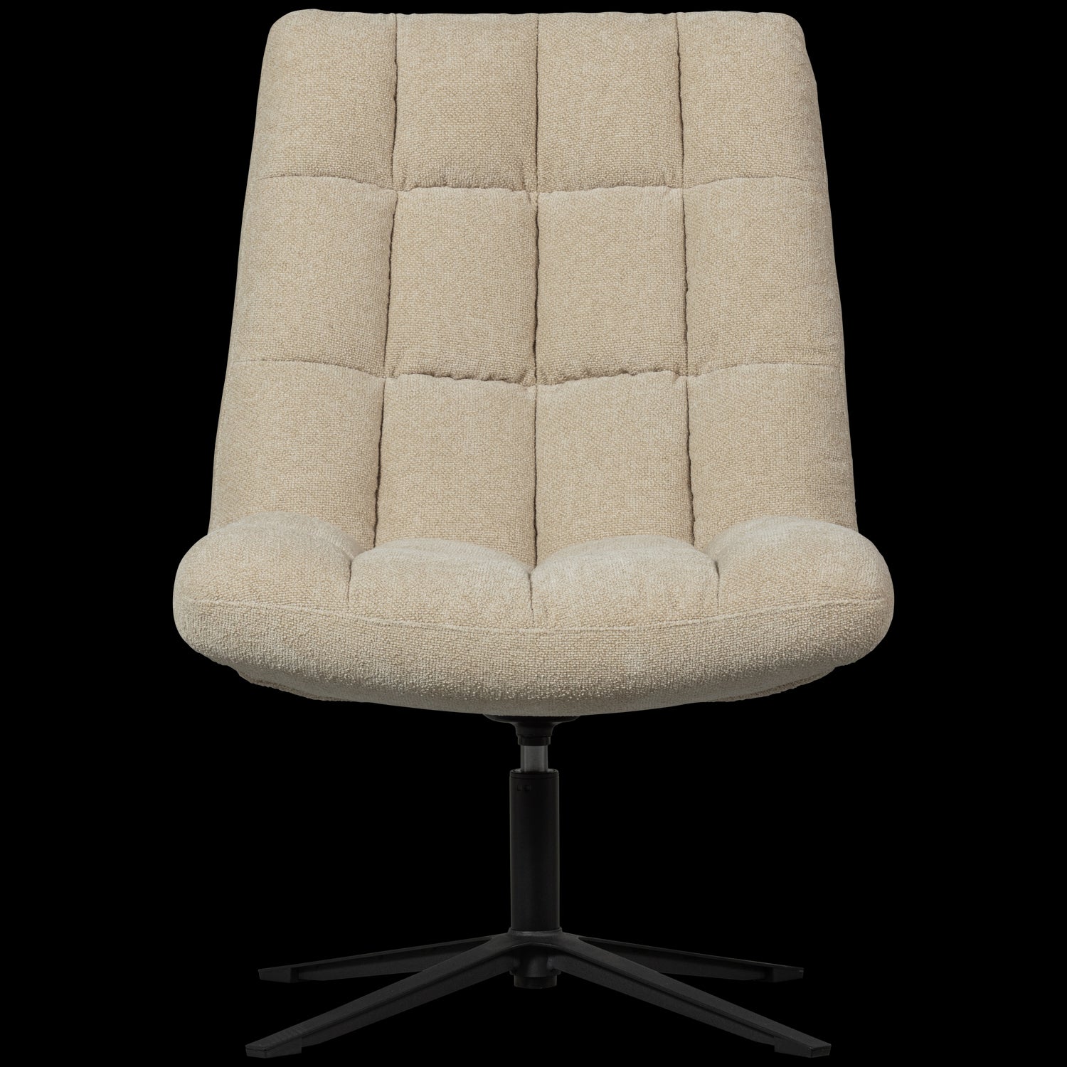 De Job draaifauteuil uit de collectie van het Nederlandse merk WOOOD heeft een stoere uitstraling en is voorzien van zachte organische vormen. De zitting en rugleuning van Job zijn bekleed met een wollige boucléstof. Het onderstel is gemaakt van metaal voorzien van een zwarte poedercoating. Job nodigt uit om eens lekker te relaxen! Materiaal